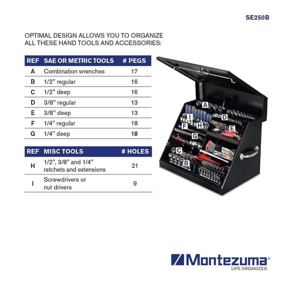 A: Yes, the Montezuma tool chest has designated spaces and a socket tray allowing for storage of both metric and SAE tools, offering organized and efficient tool management.