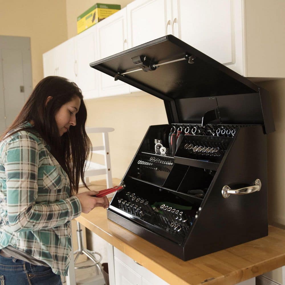 Tool Accessibility: Gas spring-assisted lid opens smoothly, securing tools in position when closed for easy access.