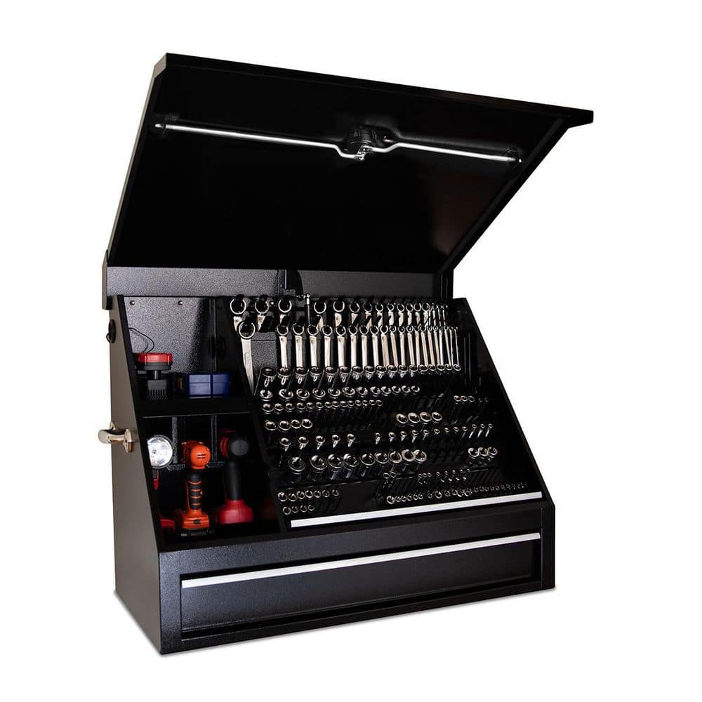 Montezuma 37 in. W x 18 in. D 1-Drawer Black Steel Portable Shop Triangle Tool Box Chest for Sockets, Wrenches and Screwdrivers