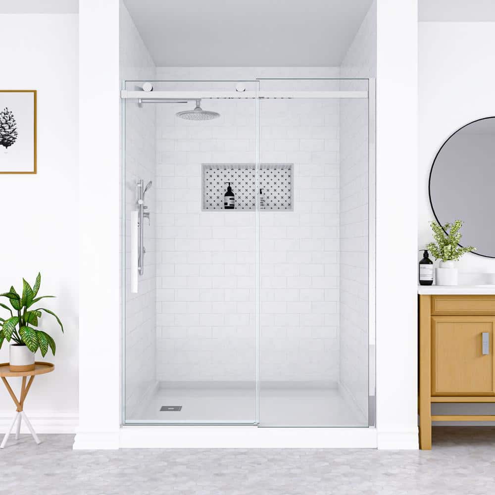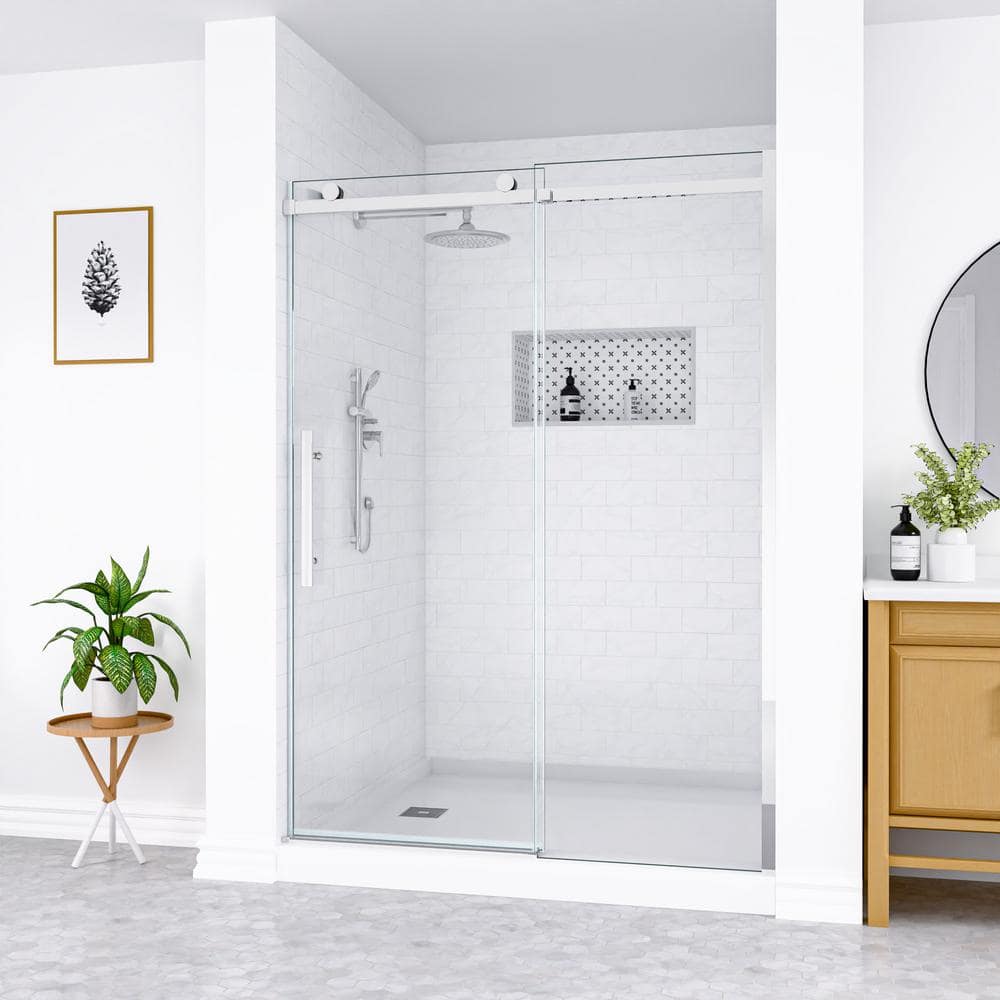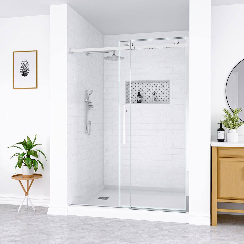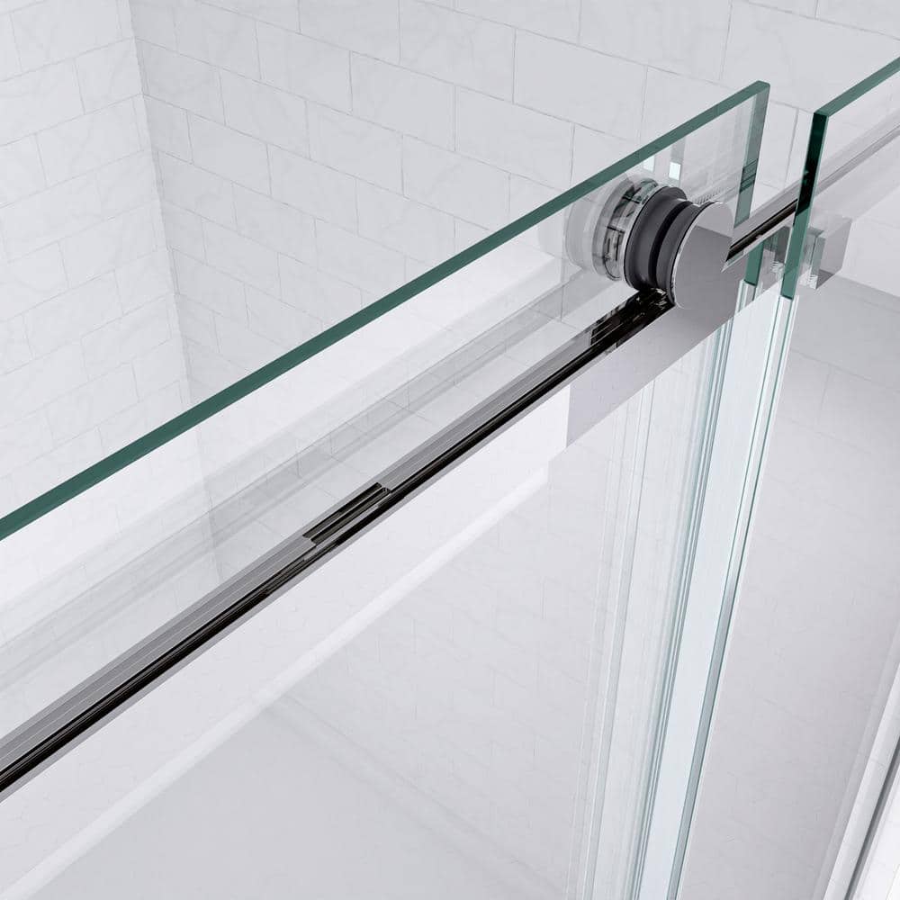 mortix 60 in. W x 74 in. H Single Sliding Frameless Shower Door in Chrome with Soft Close System and Clear Tempered Glass