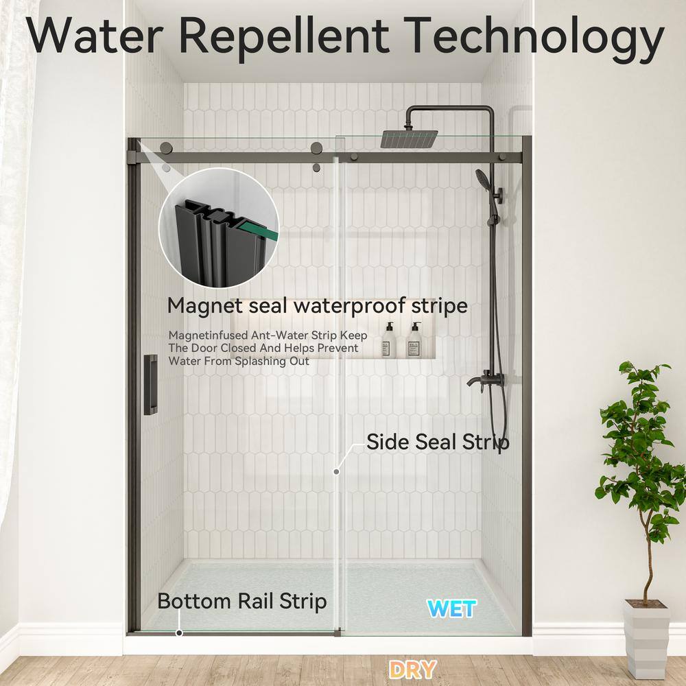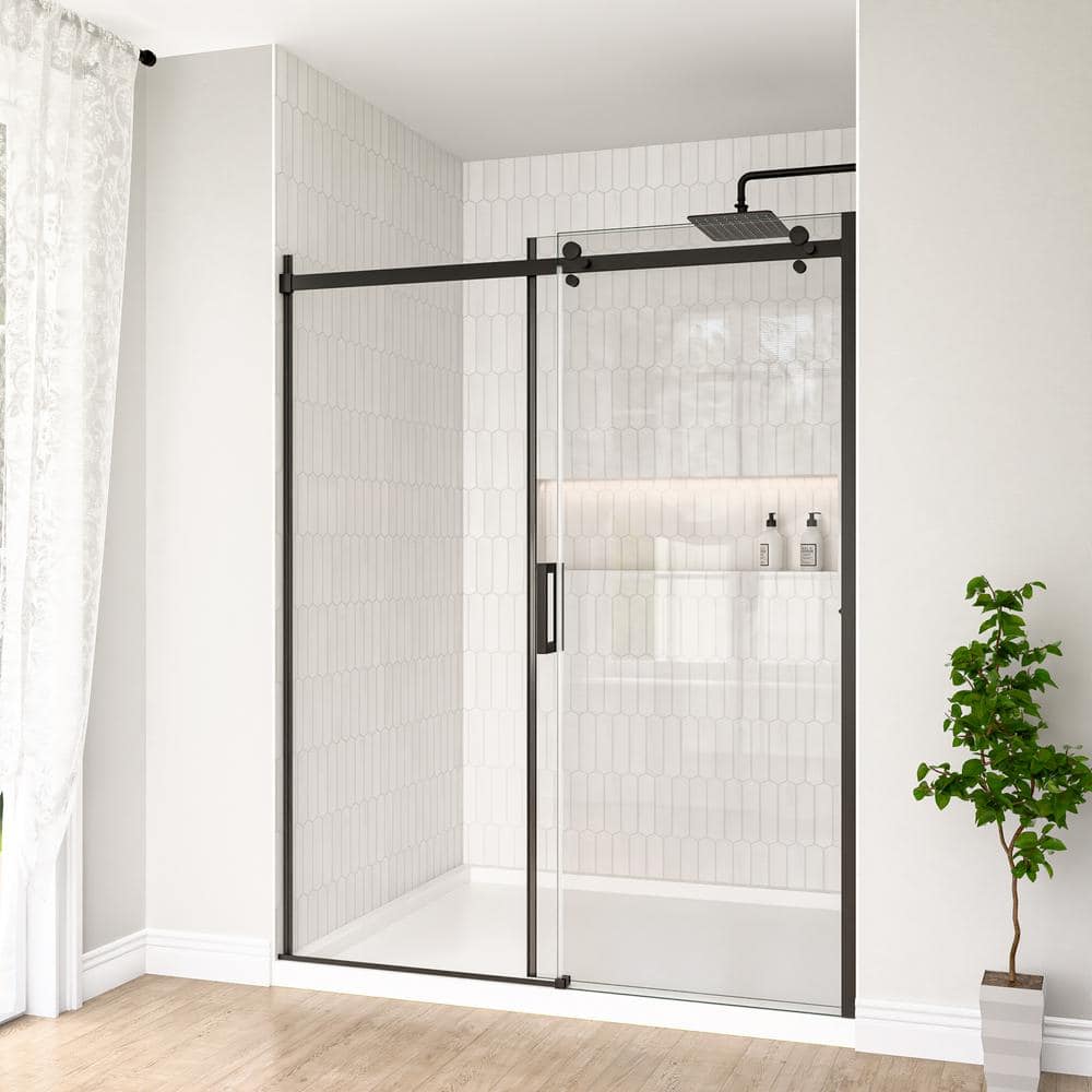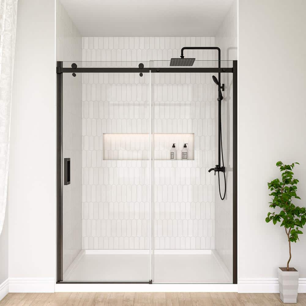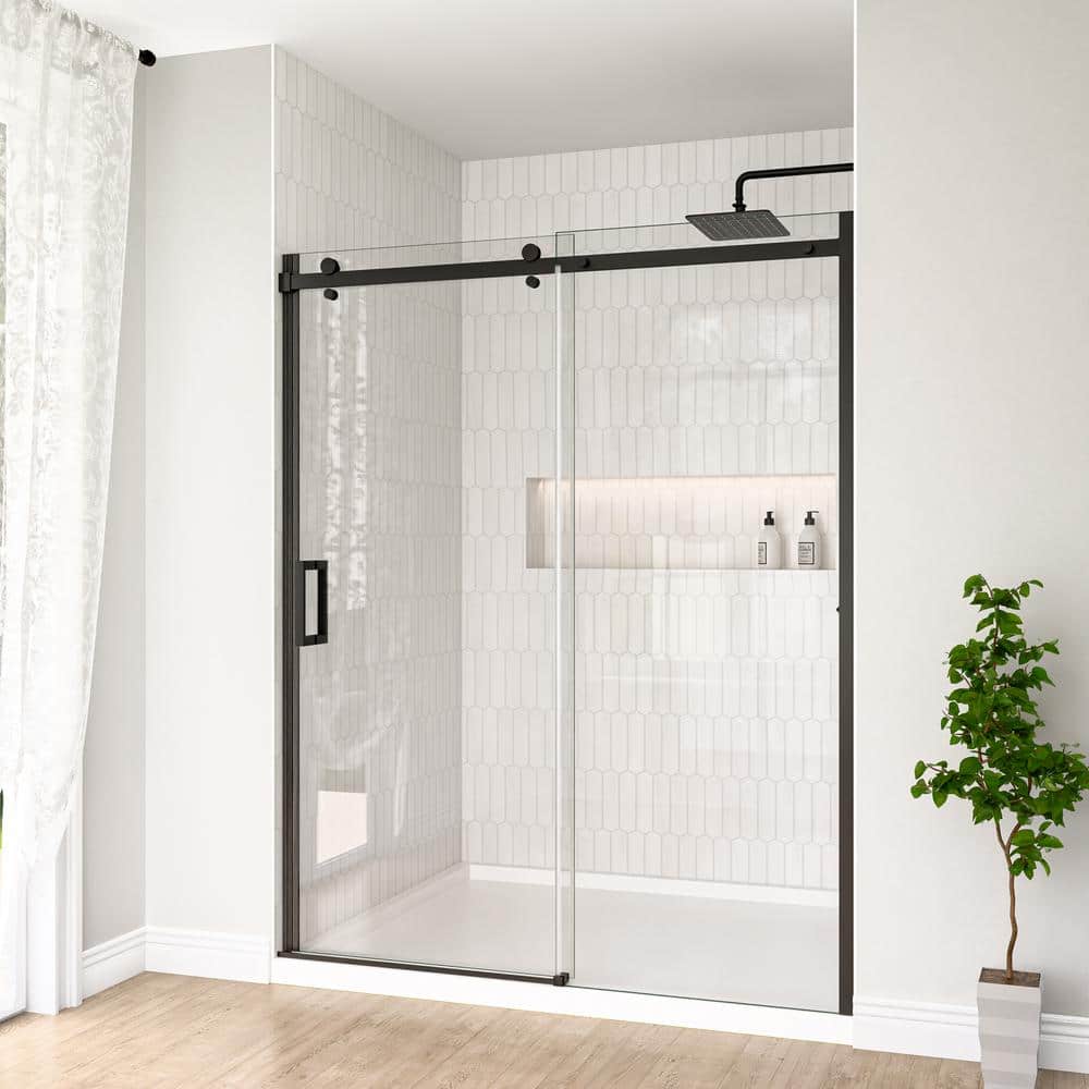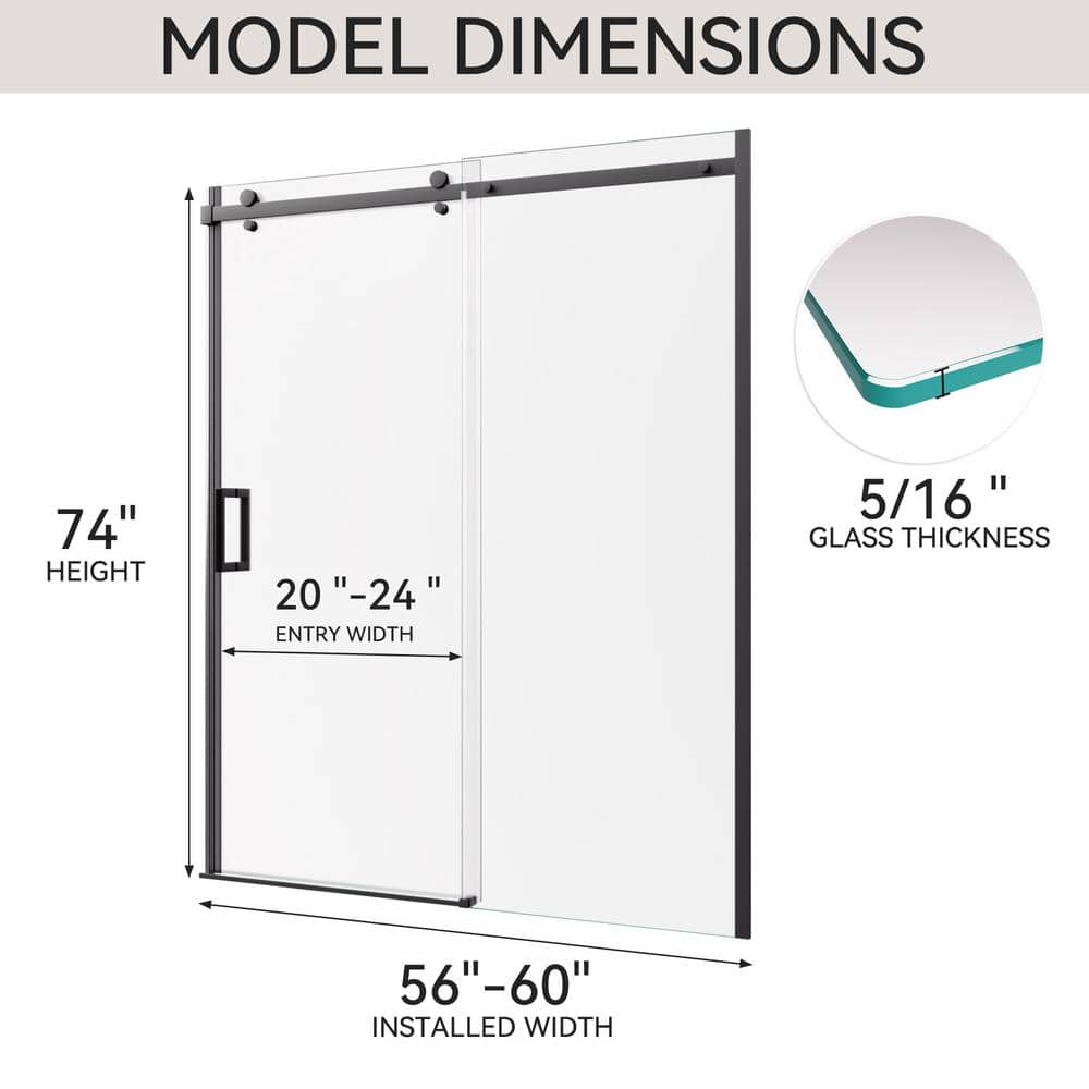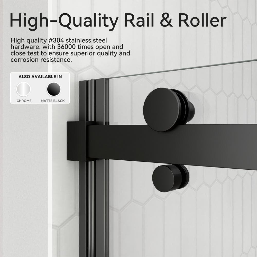 Transform your bathroom with the Mortix 60 in. W x 74 in. H Semi-Frameless Shower Door. Its elegant matte black finish and robust explosion-proof tempered glass bring both style and safety to your space while offering a smooth sliding experience with stainless-steel rollers. Designed for easy installation, this door is perfect for modernizing any bathroom setting.