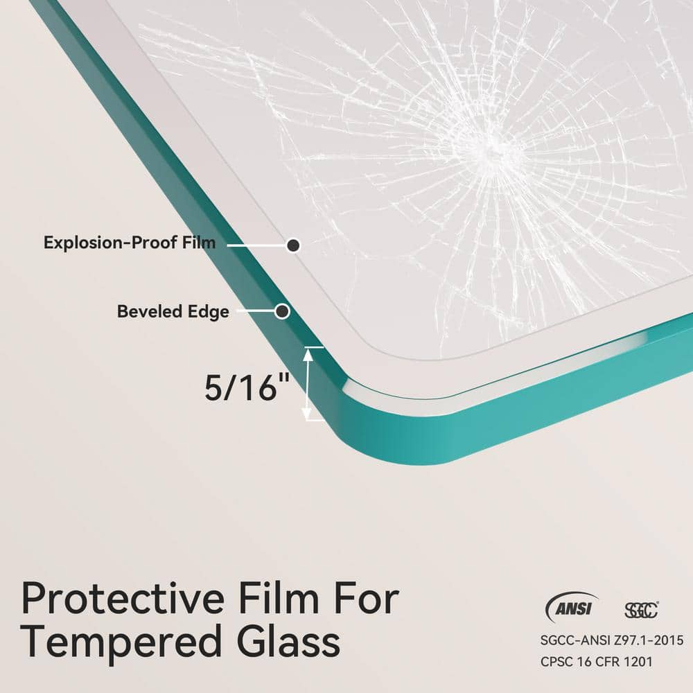 Tempered Glass: 5/16 in. ANSI-certified glass ensures durability and safety.