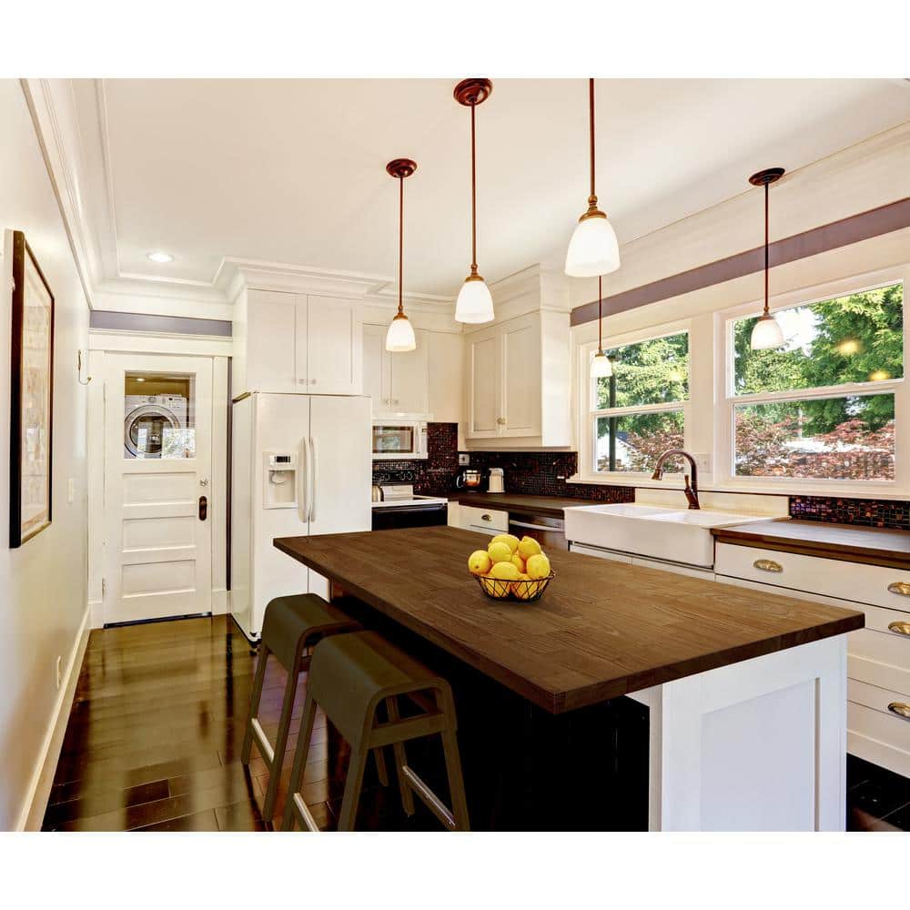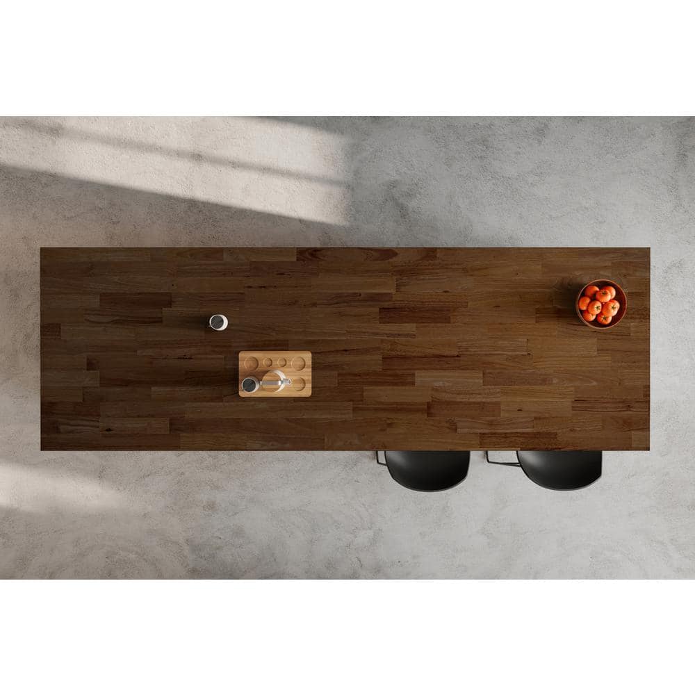 Infuse your kitchen with rich warmth and character using this stunning Finished Hevea Butcher Block Countertop. Its exquisite espresso finish envelops the room in a charming, rustic glow, effortlessly enhancing the beauty of any decor style from farmhouse to contemporary. Create visual harmony by pairing it with contrasting white cabinets or natural elements like wicker baskets and stoneware. This countertop is not just a functional surface; it’s a celebration of sustainable luxury, promising a timeless allure in every home.
