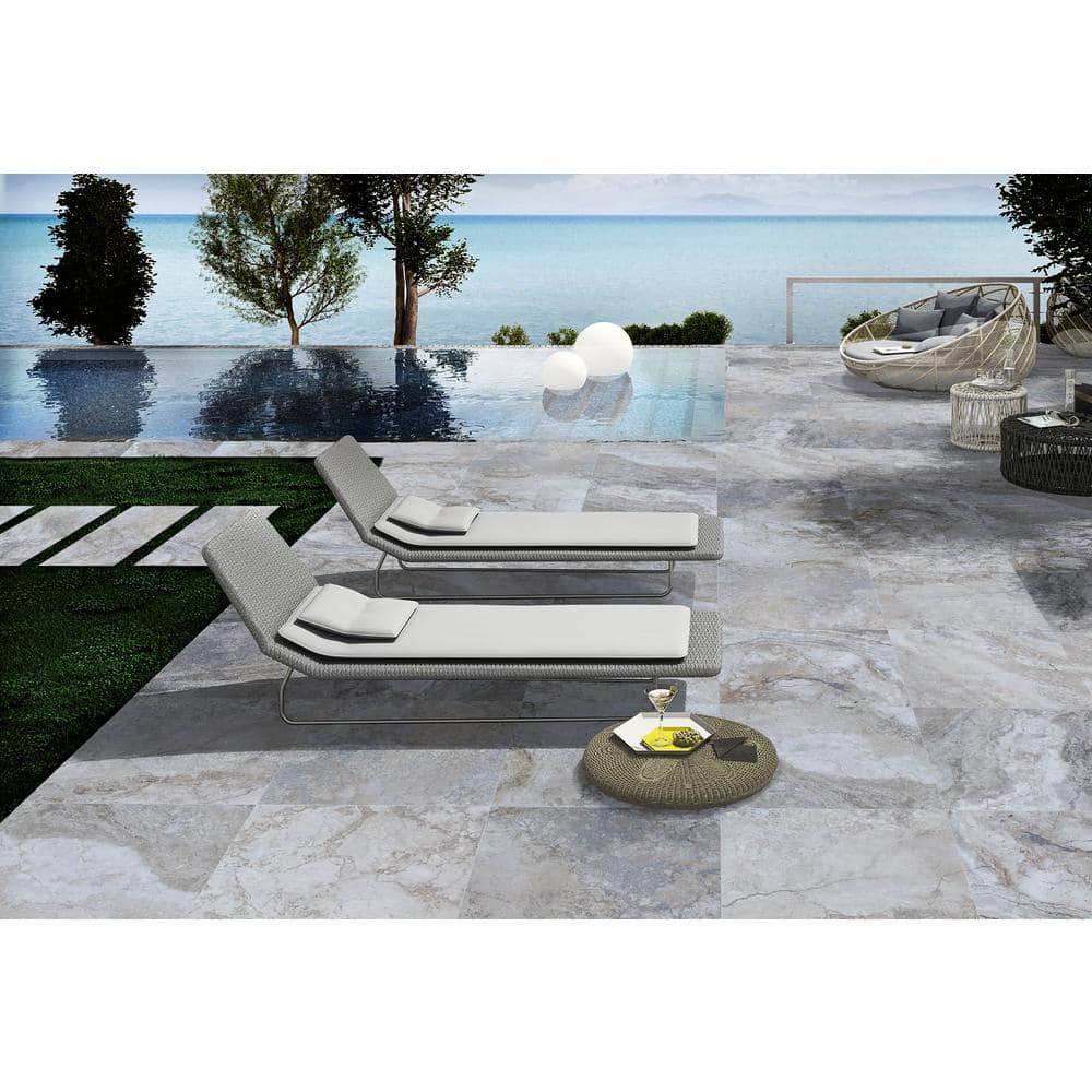Transform your outdoor space with MSI Argento Travertino Porcelain Paver Tiles. These 24x24 inch tiles mimic the elegance of natural stone with a matte finish that's both slip-resistant and frost-resistant. Perfect for adding a touch of luxury to patios, pool areas, and pathways, they seamlessly blend durability with understated sophistication.