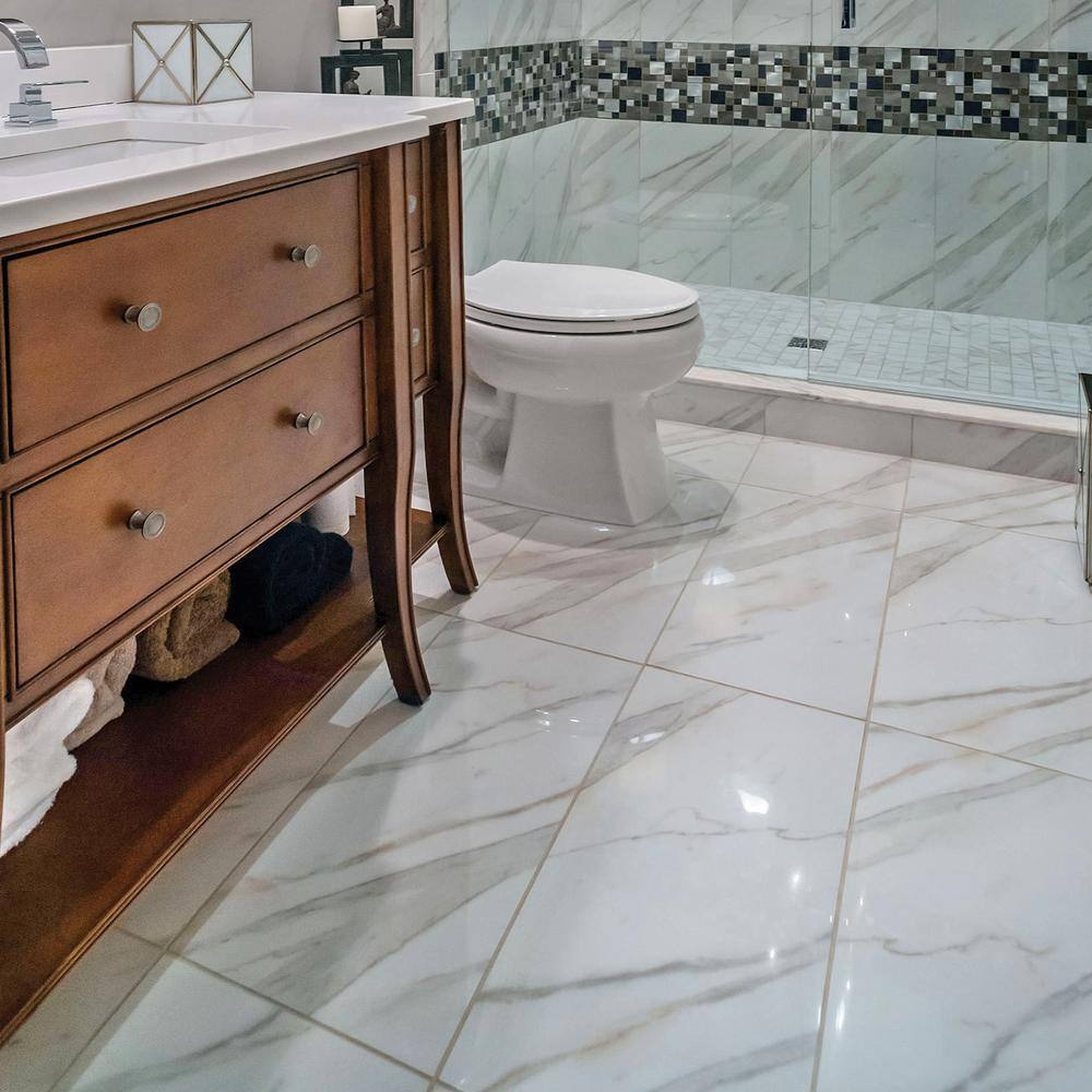 Picture a space where sophistication reigns supreme. The Calacatta Ivory tile brings timeless elegance to any room with its natural stone appeal and high-polished sheen. Imagine it spanning across your kitchen floor, reflecting light in a play of subtle hues. Pair it with sleek, modern fixtures for a striking contrast or complement its classic look with traditional touches. This tile isn't just a surface—it's a statement of luxury that elevates any interior into the realm of the exquisite.