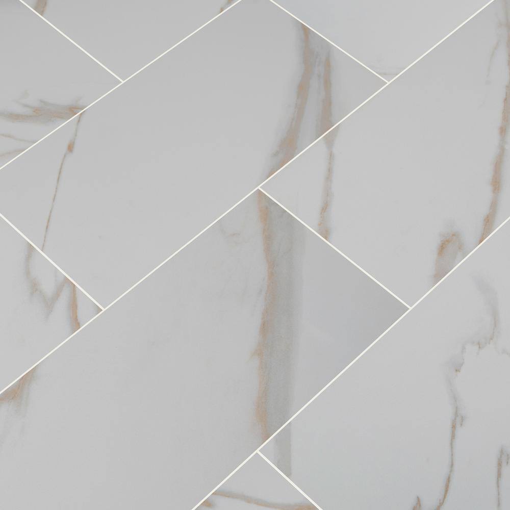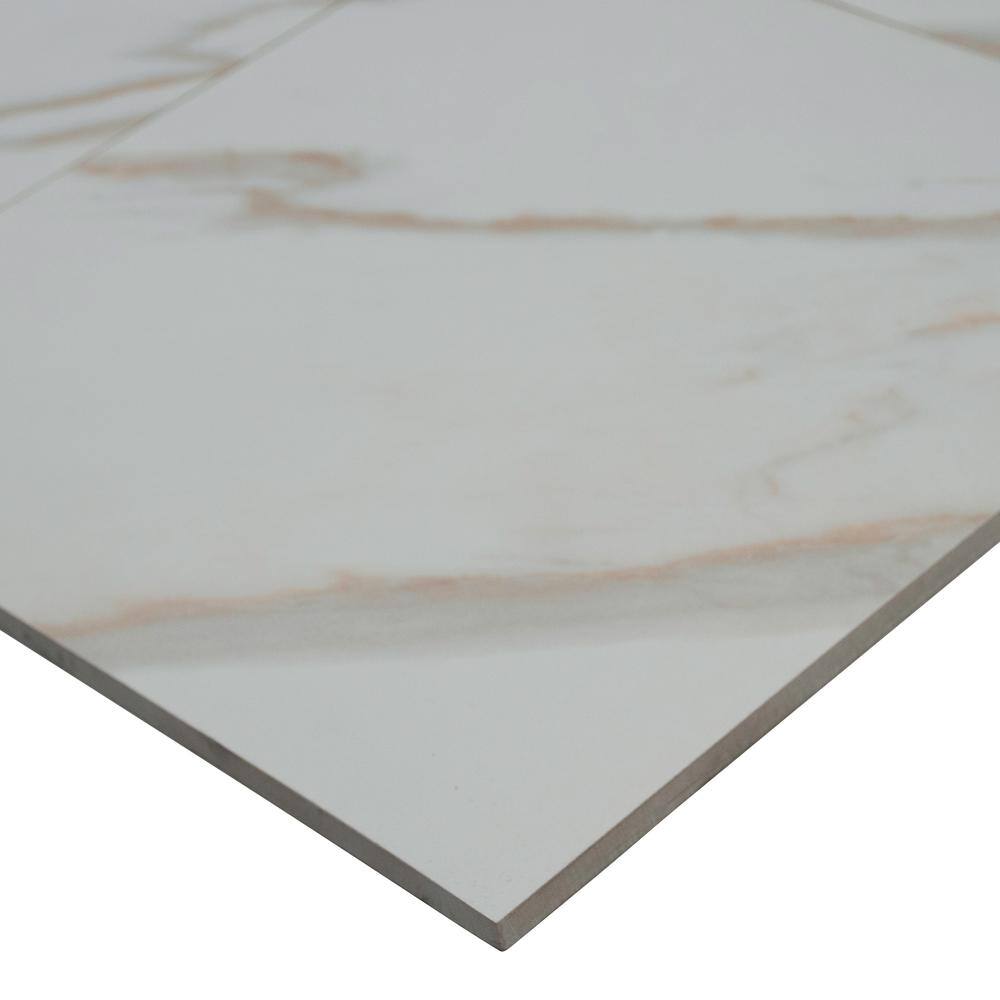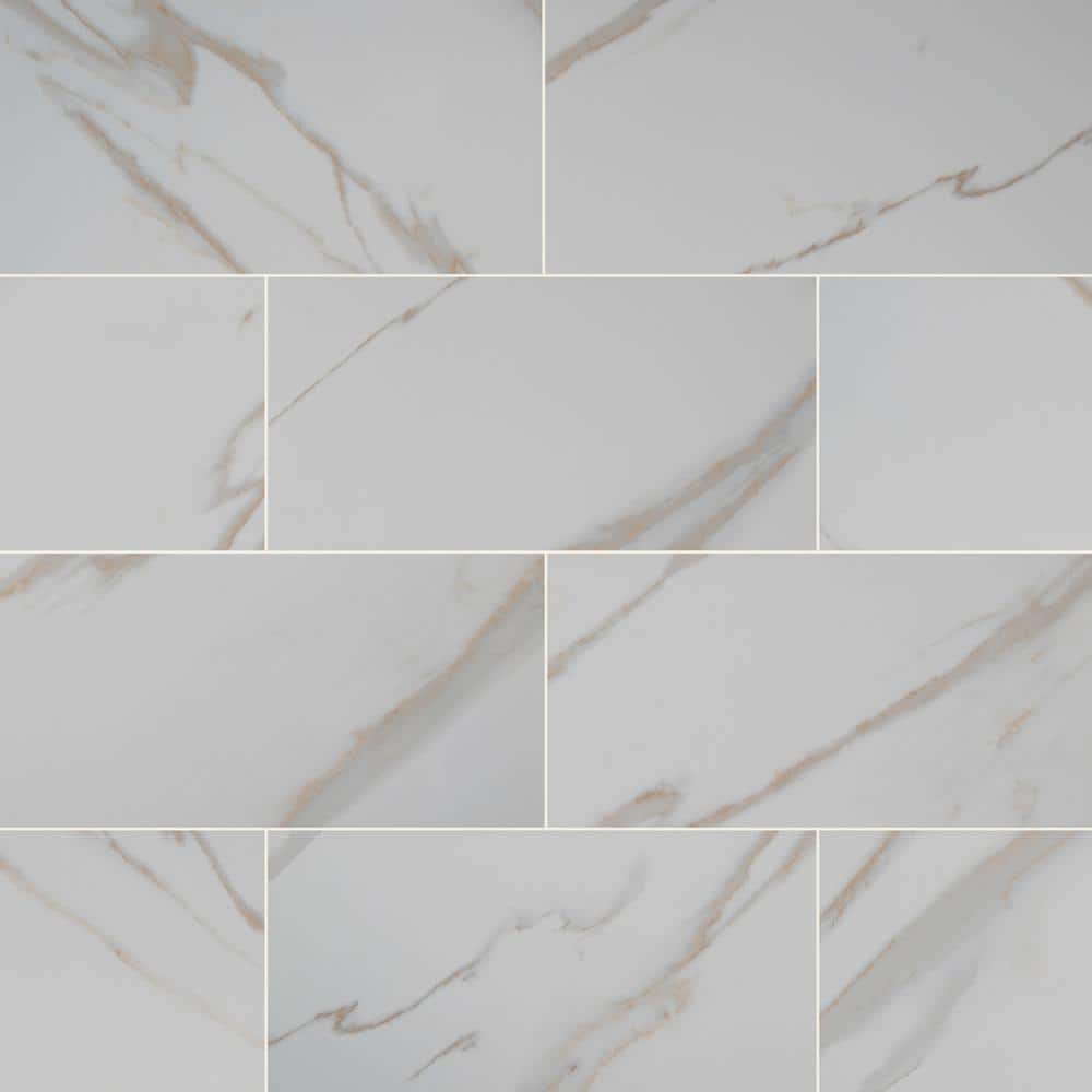 Transform your space with the luxurious MSI Calacatta Ivory 12 in. x 24 in. polished porcelain tile. This elegant tile mimics the exquisite veining of natural stone, offering a sophisticated yet affordable option for any home improvement project. Frost-resistant and water-impervious, it's ideal for bathrooms, kitchens, and beyond.