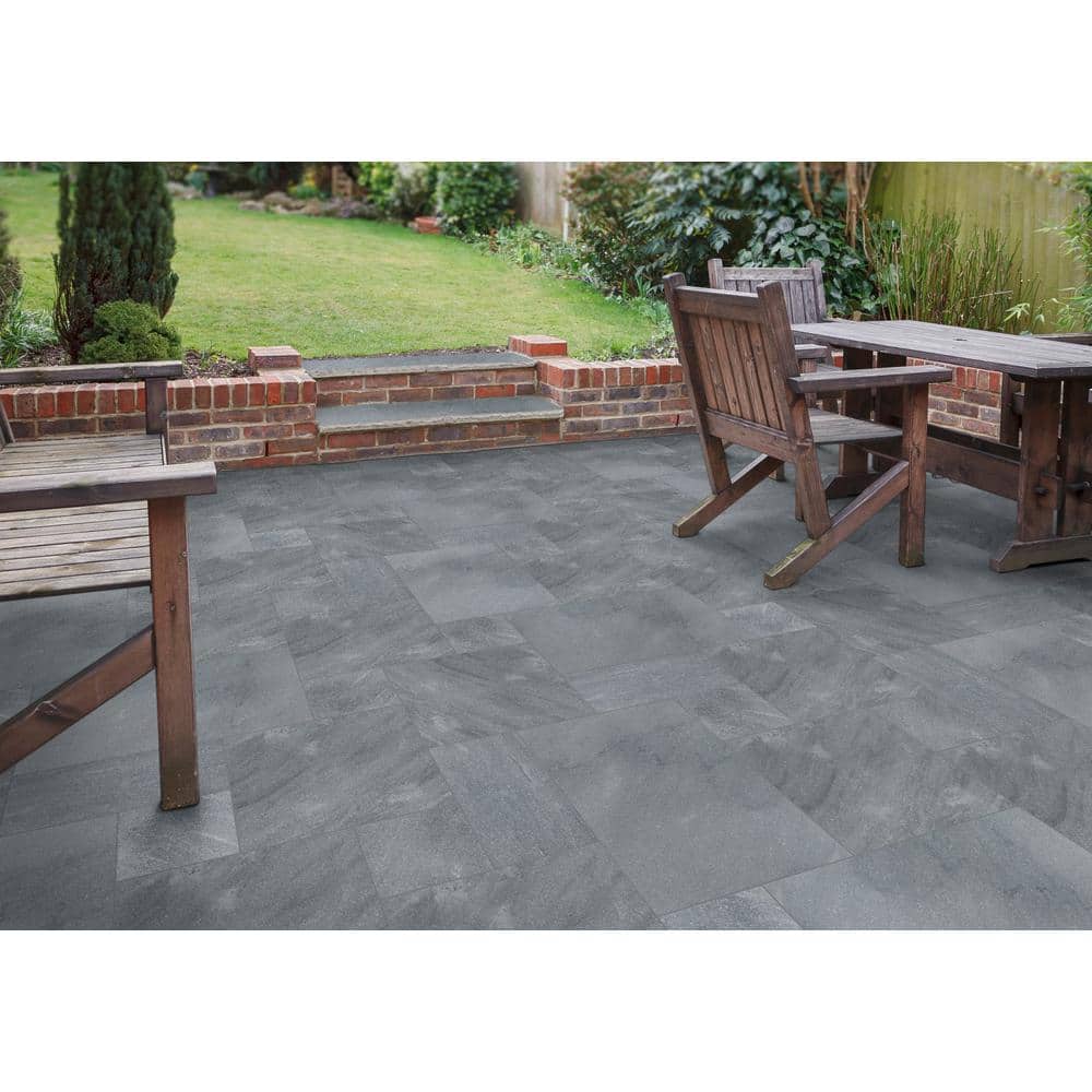 Transform your outdoor space into a luxurious haven with the Cosmic Black Sandblast Marble Paver Tile Kit by MSI—order today and redefine elegance!