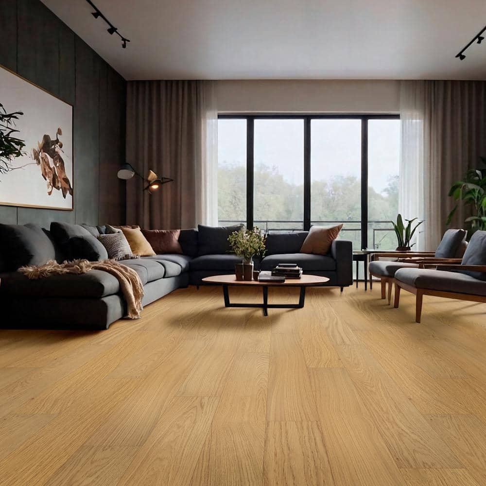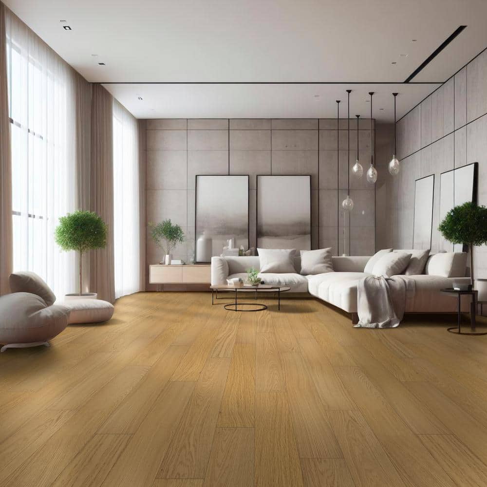 Experience the timeless charm of European oak captured in the Grant Manor Engineered Hardwood Flooring. The wide planks bring elegance and warmth to any interior, drawing attention with their rich, natural grain. Embrace a minimalist aesthetic by pairing these floors with sleek, contemporary furniture, or accentuate their rustic appeal with cozy textiles and wooden accents. This flooring's versatile beauty and durability make it an indispensable component for luxurious, enduring home design.