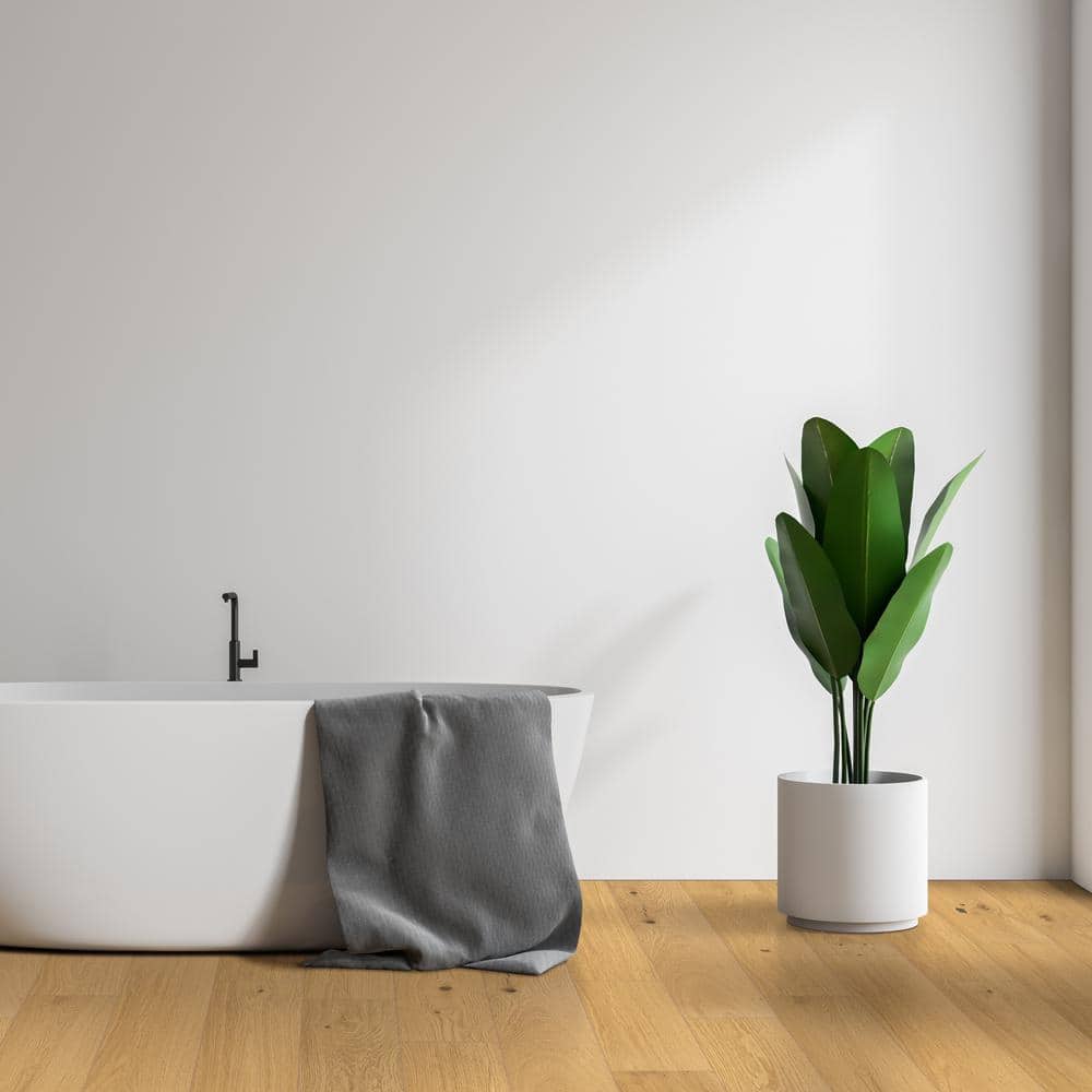 A: Yes, thanks to its scratch-resistant surface and Janka hardness rating of 1360, it is ideal for high traffic areas both in homes and light commercial environments.