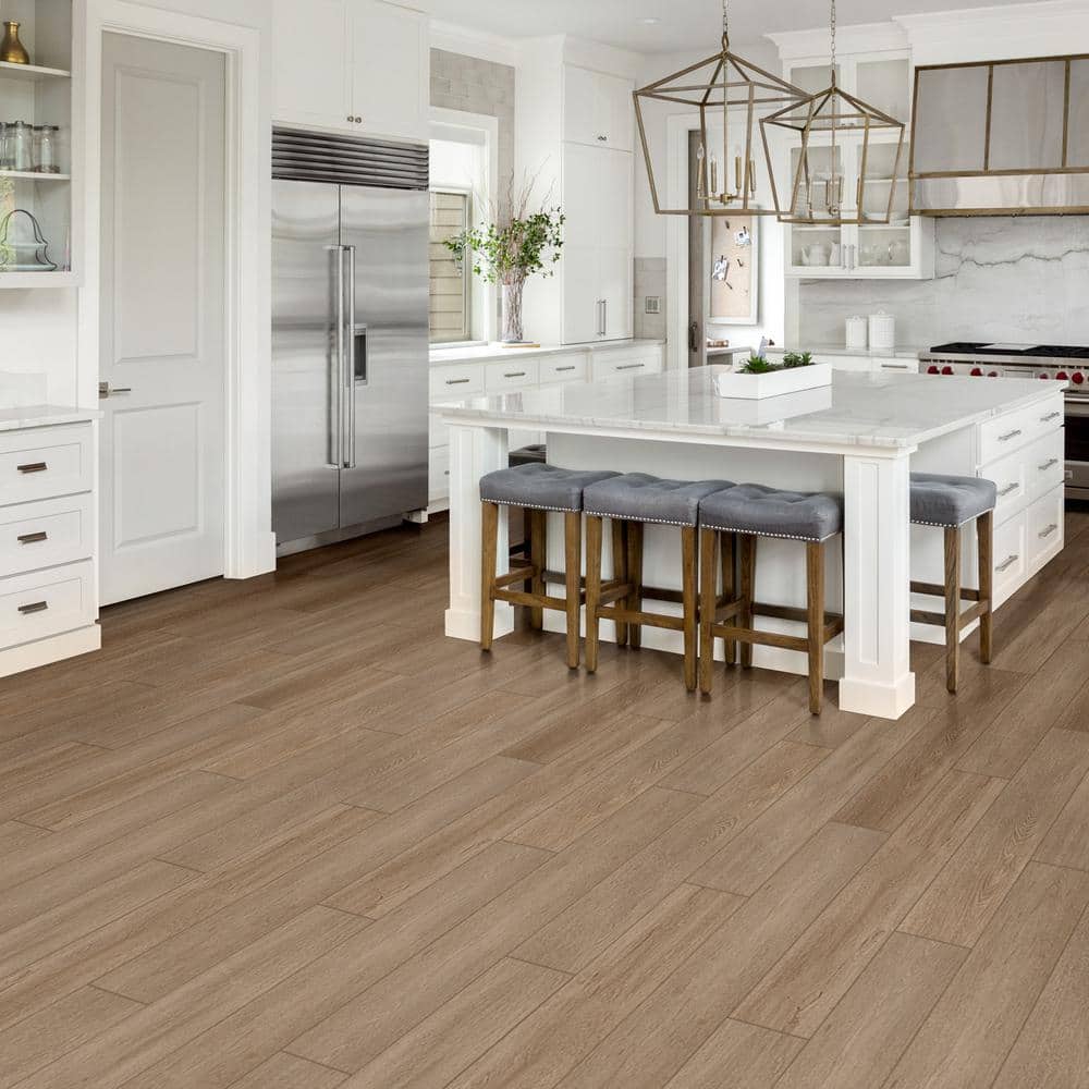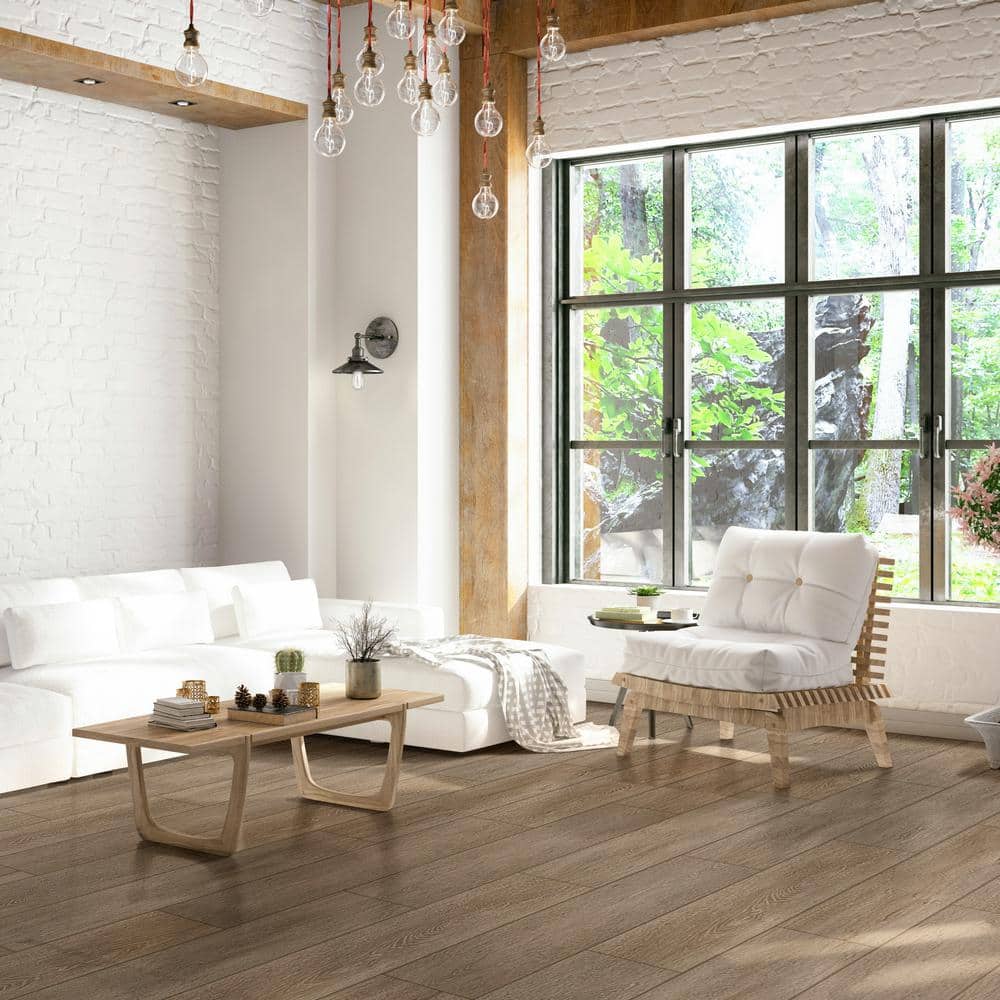Experience the enduring beauty and practicality of MSI's Lauren Springs Oak Waterproof Laminate Flooring. Designed to mimic the rustic charm of reclaimed wood, this flooring features rich brown tones and a realistic grain pattern. With its pre-attached underlayment, this laminated floor ensures a quieter, more comfortable footfall and seamless installation.