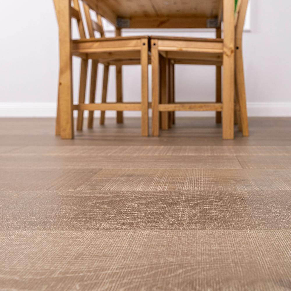- Aesthetics: Dark gray, wide planks with micro-beveled edges create an elegant and seamless look.
