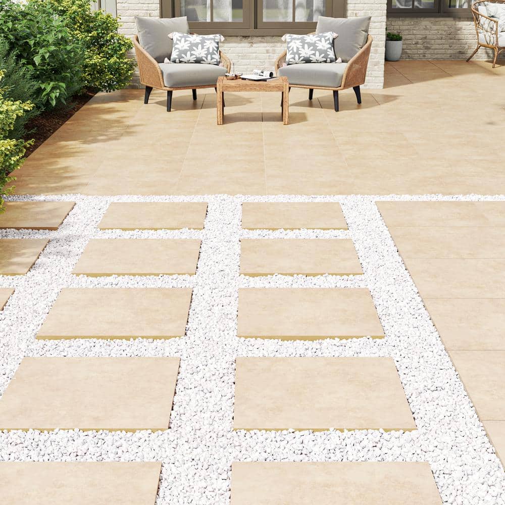 The MSI Petra Beige 24 in. x 24 in. Porcelain Paver Tile combines the beauty of natural stone with the durability of porcelain. Resistant to staining and frost, this slip-resistant tile is perfect for outdoor and indoor use, offering a modern yet timeless look to patios, driveways, and entryways. Low-maintenance and fade-proof, it's designed for both residential and light commercial projects.