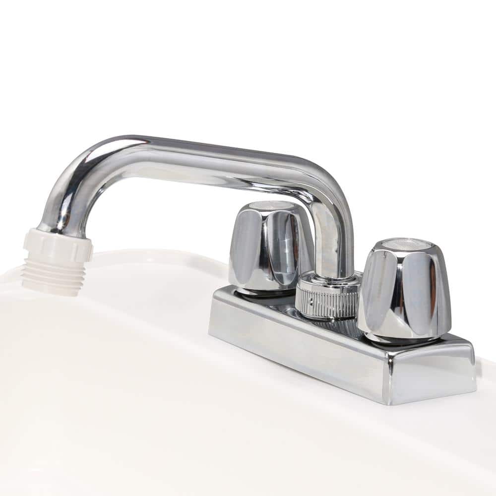 A: It can accommodate single or dual-handle faucets with a 4-inch center.