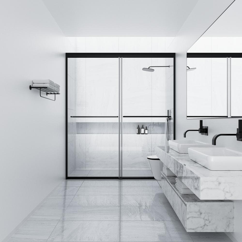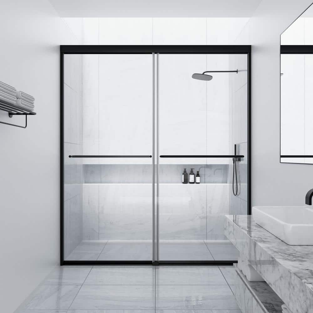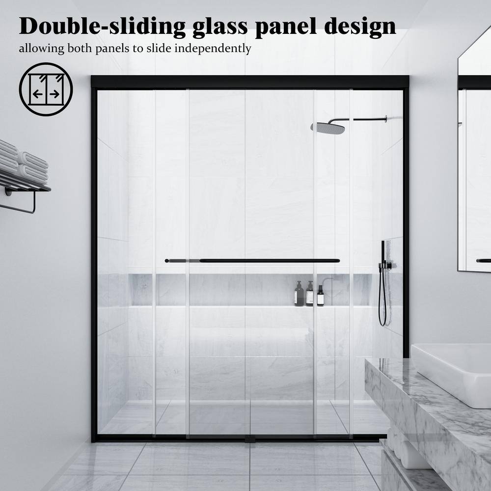 Transform your bathroom with the NANAWO Bypass Sliding Shower Door. This stylish addition showcases 1/4 in. tempered glass and a sophisticated matte black finish, offering durability and a modern touch. Engineered for easy installation, it enhances any alcove bath space with its sleek design and high functionality.