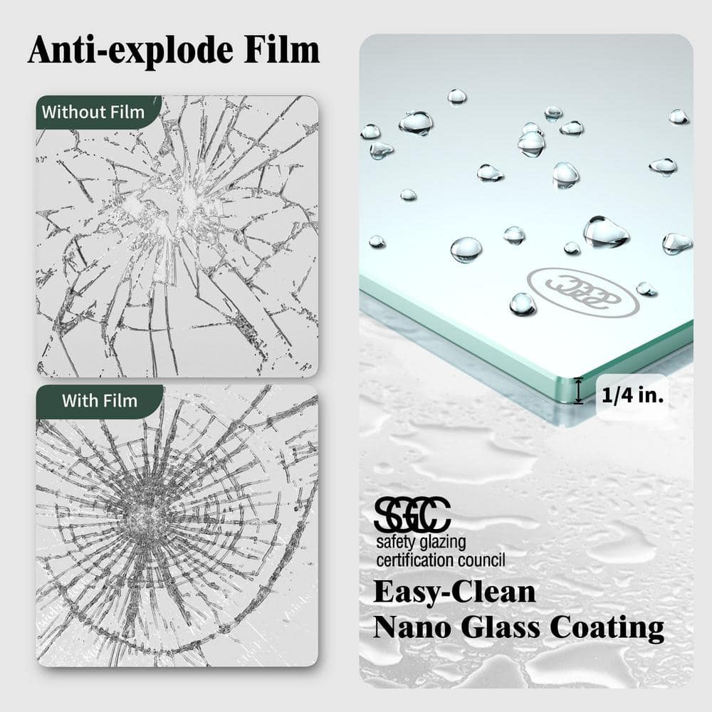 Tempered Glass: 1/4 in. SGCC tempered glass with nano easy-clean treatment for durability and easy maintenance.