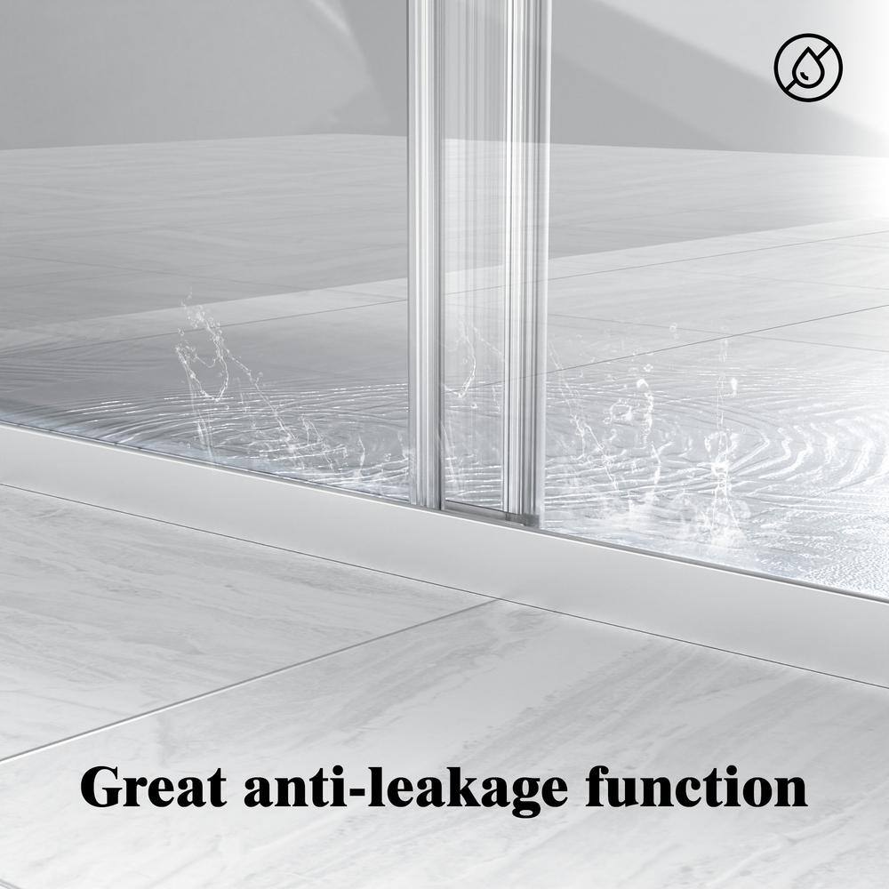 A: The anti-leak design includes precision-engineered seals and framing to prevent water from escaping the shower area, keeping floors dry and safe.