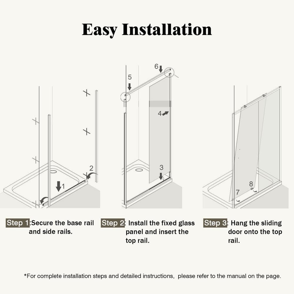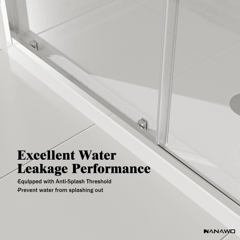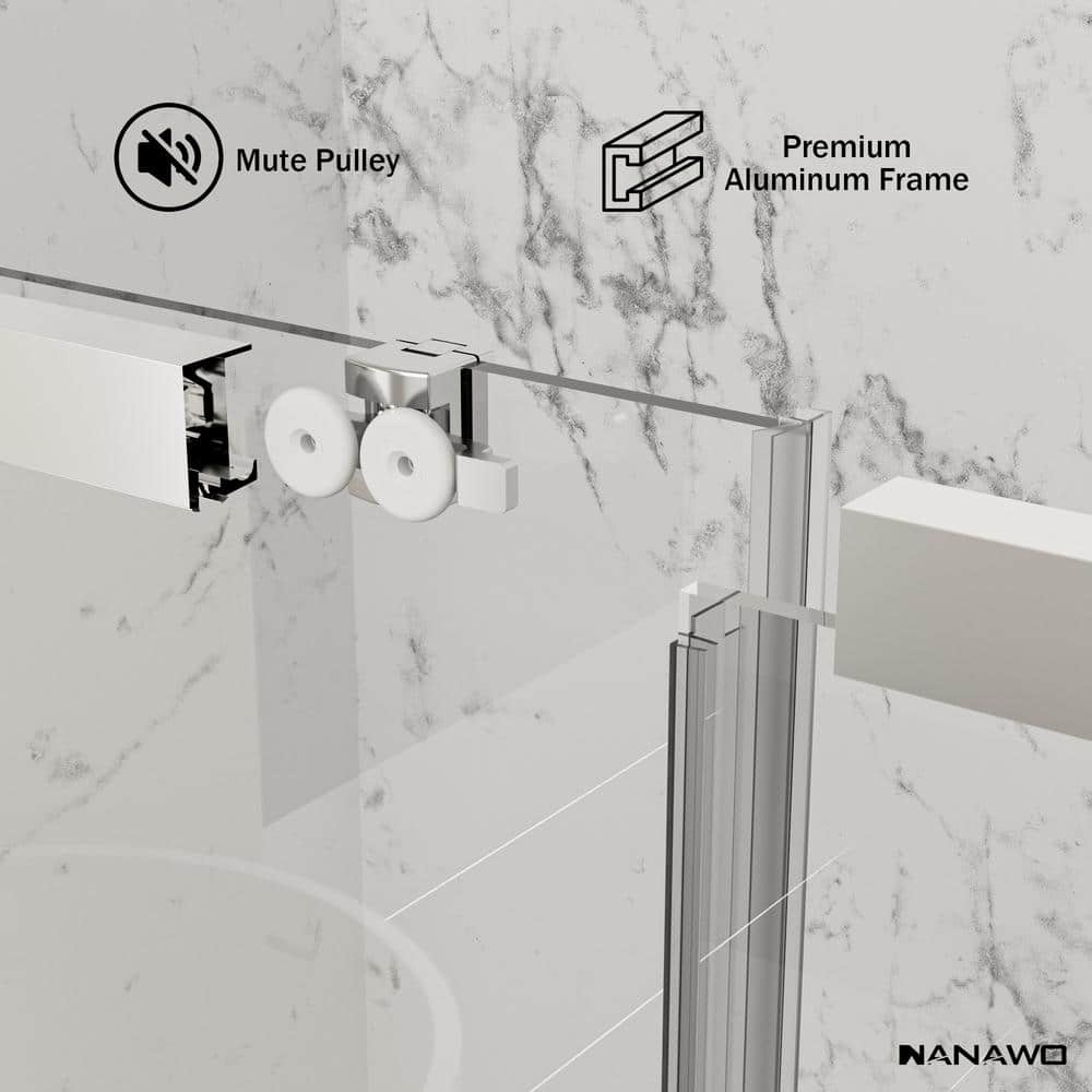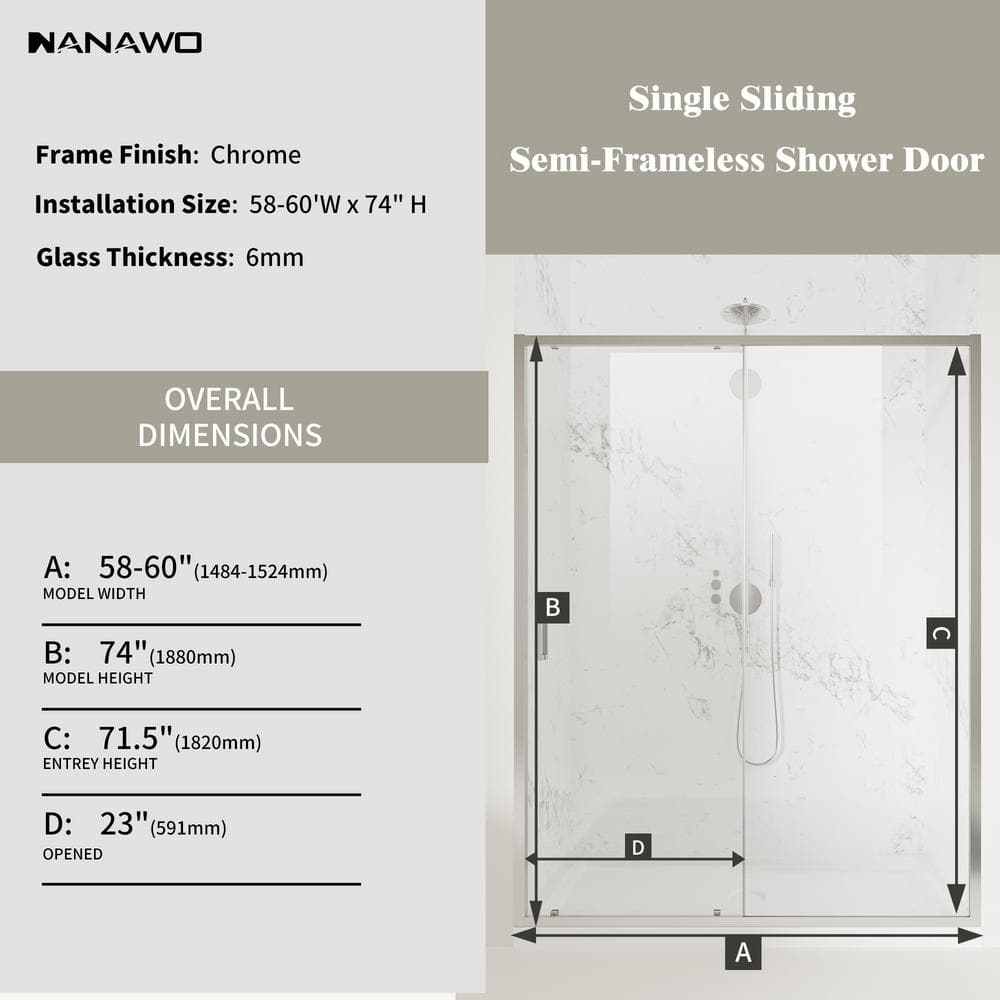 Transform your bathroom with the NANAWO QuickMount Semi-Frameless Shower Door, designed for fast, hassle-free installation. Its sleek chrome finish and clear tempered glass create a contemporary, sophisticated look. Engineered for exceptional durability, this door is the perfect blend of style and functionality for your shower space.