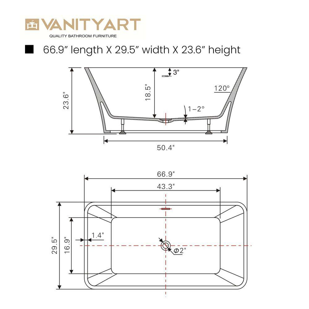 Indulge in the ultimate relaxation with the Vanity Art Nantes 67-inch Acrylic Freestanding Soaking Bathtub. Designed to fit seamlessly in any modern bathroom, this bathtub offers both luxury and comfort with its sleek design and durable acrylic construction.