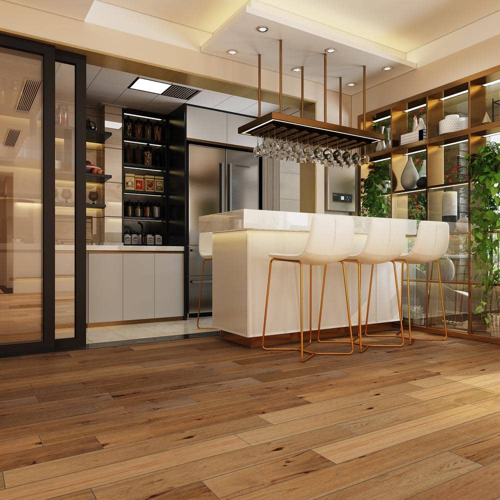 Invest in NATU Roasted Distressed Hickory Engineered Hardwood Flooring today and effortlessly elevate your home's aesthetic and functionality.