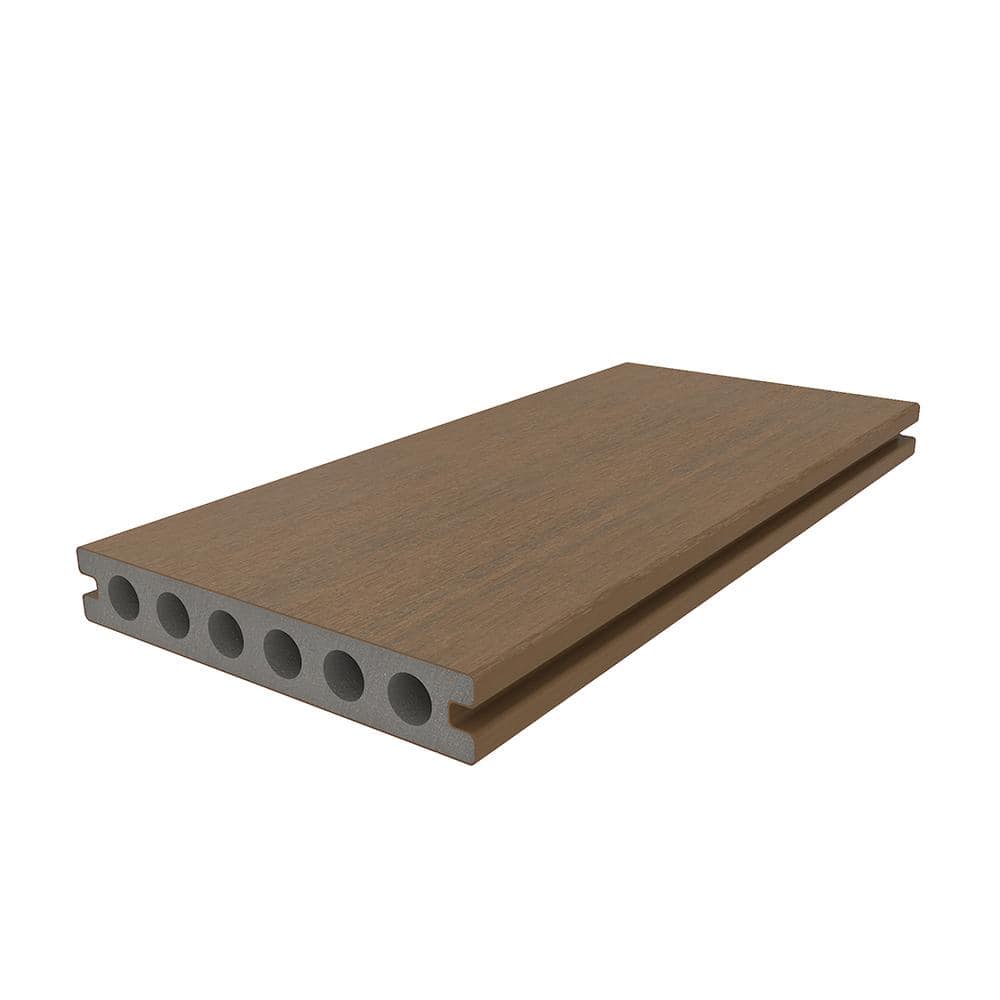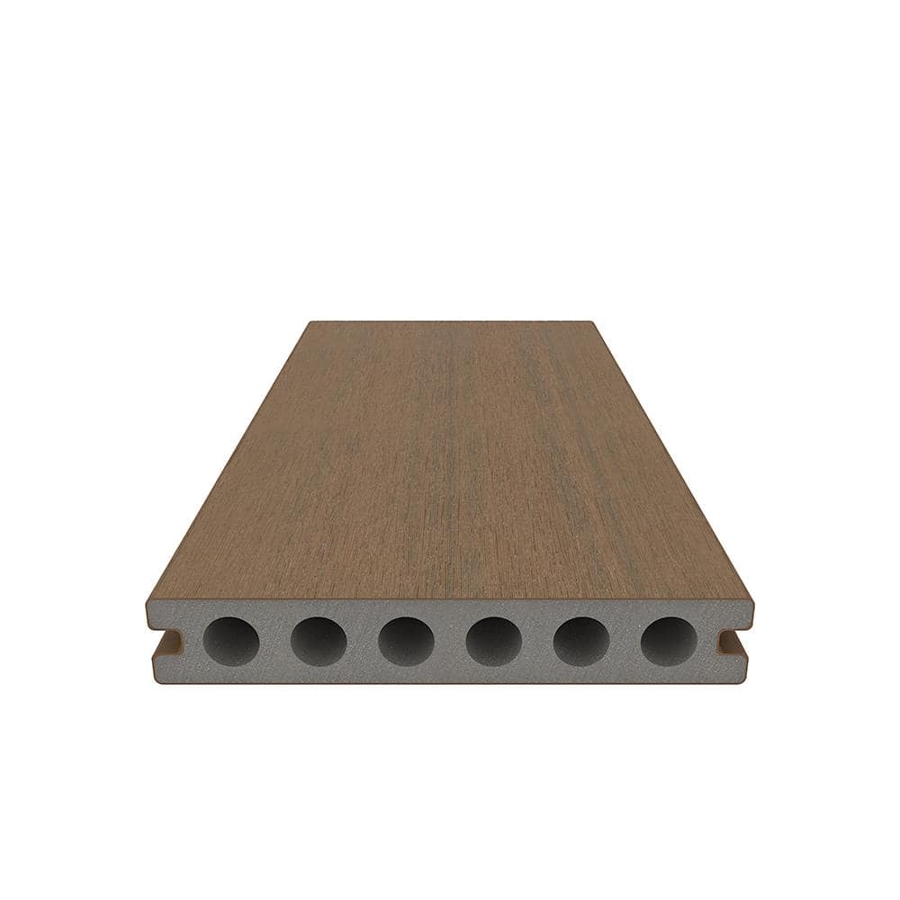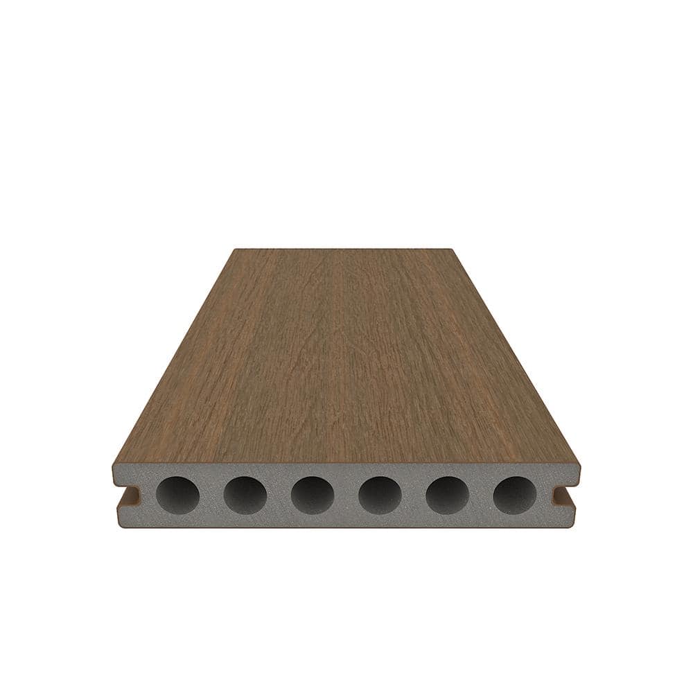 Transform your outdoor spaces with NewTechWood UltraShield Naturale Voyager Composite Decking. Featuring a stunning Peruvian Teak finish, these durable boards offer the beauty of wood with superior stain, fade, and scratch resistance. Ideal for creating a low-maintenance, luxurious outdoor living area.