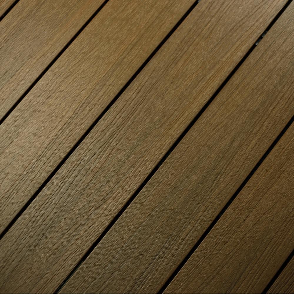 Unveil the beauty of the tropics in your own backyard with the NewTechWood UltraShield Peruvian Teak Composite Decking. Its exquisite simulated wood grain replicates nature's charm, inviting tranquility and luxury. Imagine a seamless fusion of form and function as these adaptable boards lay the foundation for intimate gatherings under the stars. Fashion your deck with vibrant cushions and ambient lighting to redefine luxurious outdoor living.