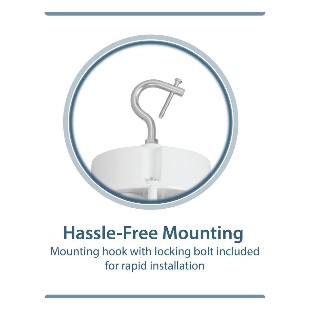A: The NICOR HBC4 comes with mounting hardware, including a hook and locking bolt for easy and secure installation. Ensure it's hardwired by a qualified electrician for optimal performance.