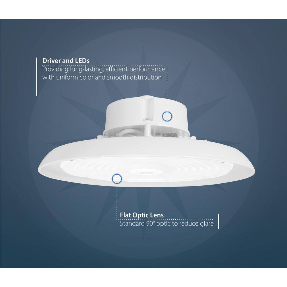 Transform expansive interiors by harnessing the NICOR HBC4 High Bay Light's brilliant clarity. The fixture's clean, streamlined silhouette in a pristine white powder coat pairs effortlessly with industrial chic aesthetics, adding both function and form to high-ceiling spaces. Envision it hanging dramatically above bustling gym floors or elegantly illuminating vast warehouse aisles. Embrace this lighting marvel as an indispensable anchor in your quest for sophisticated, functional interiors, where brightness meets audacious style.