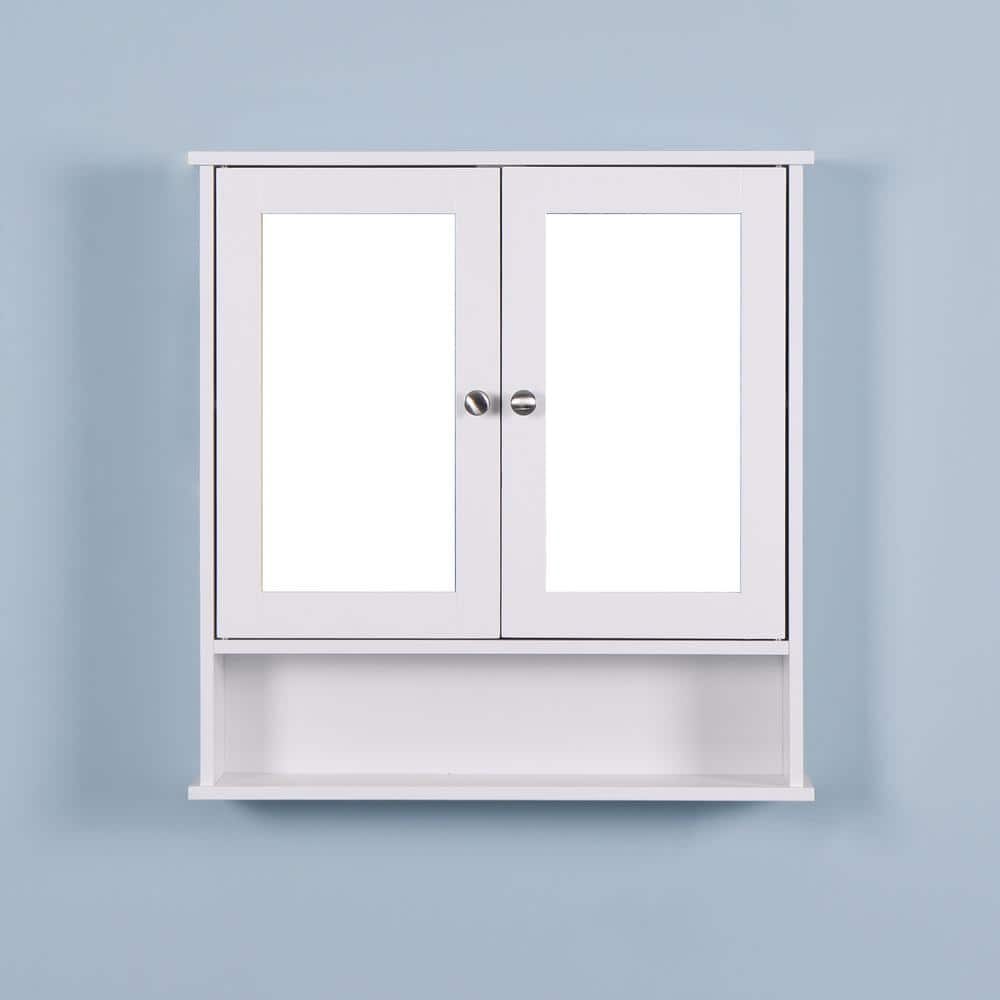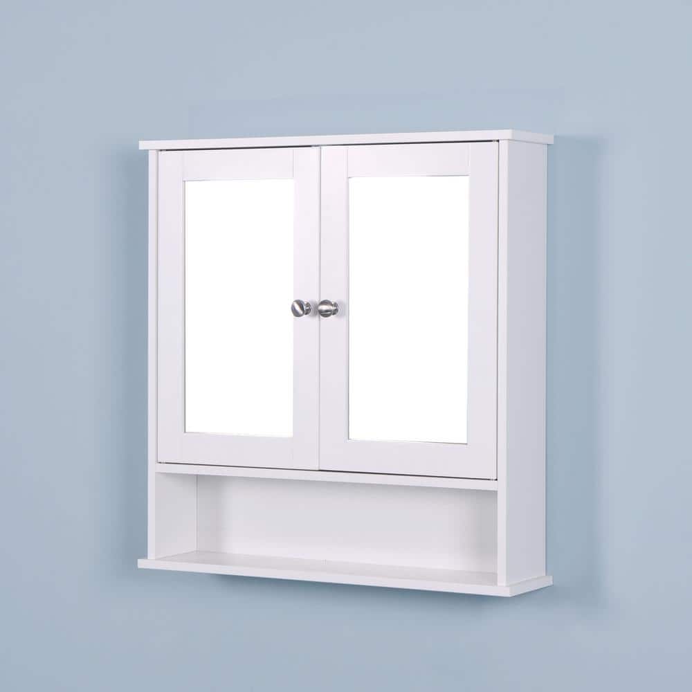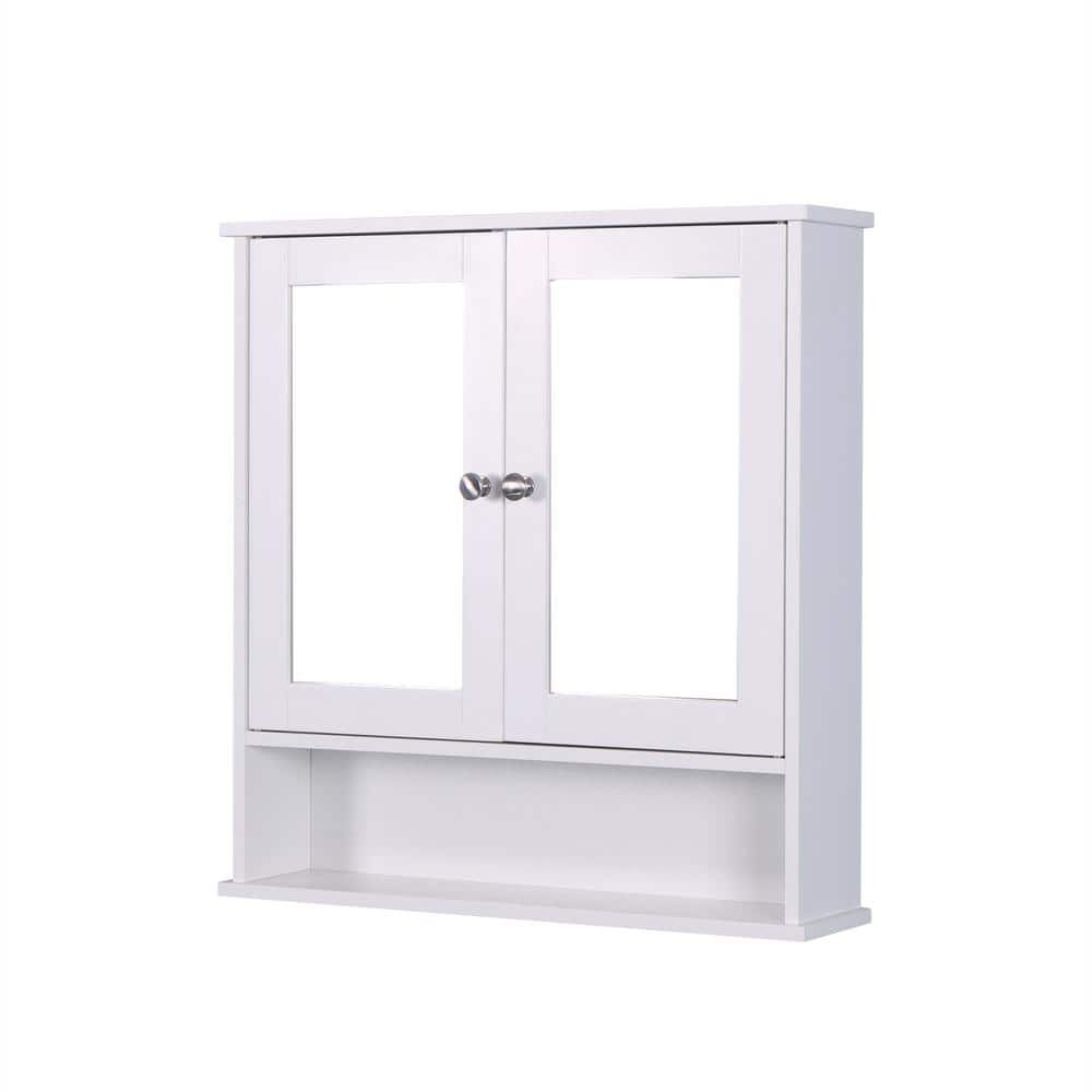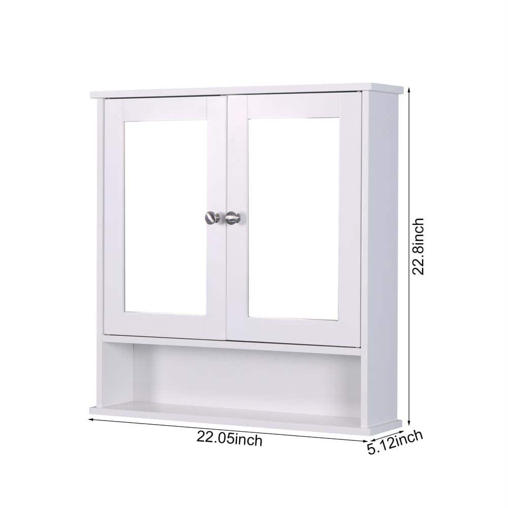 22 in. Rectangular White Wood Medicine Cabinet with Mirror