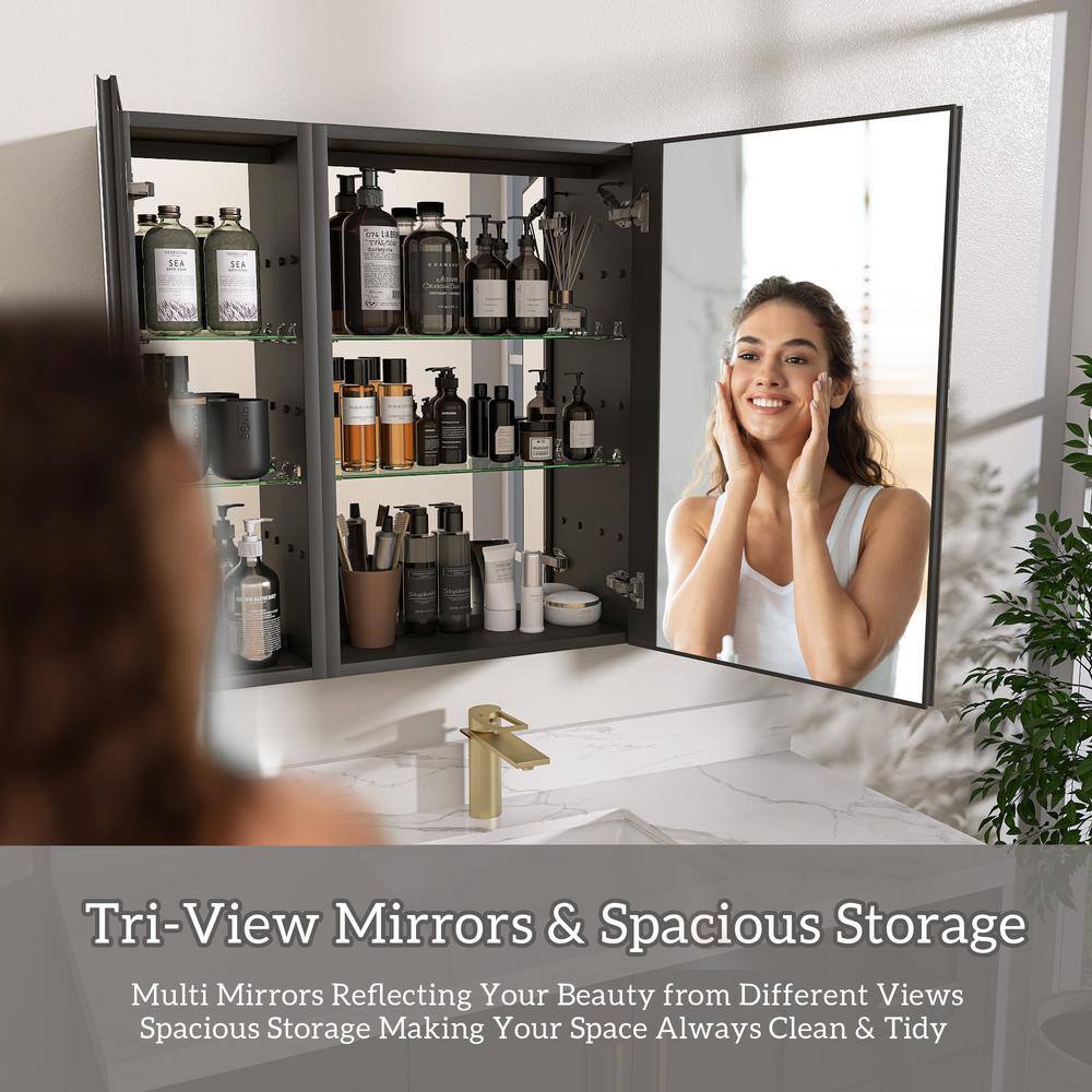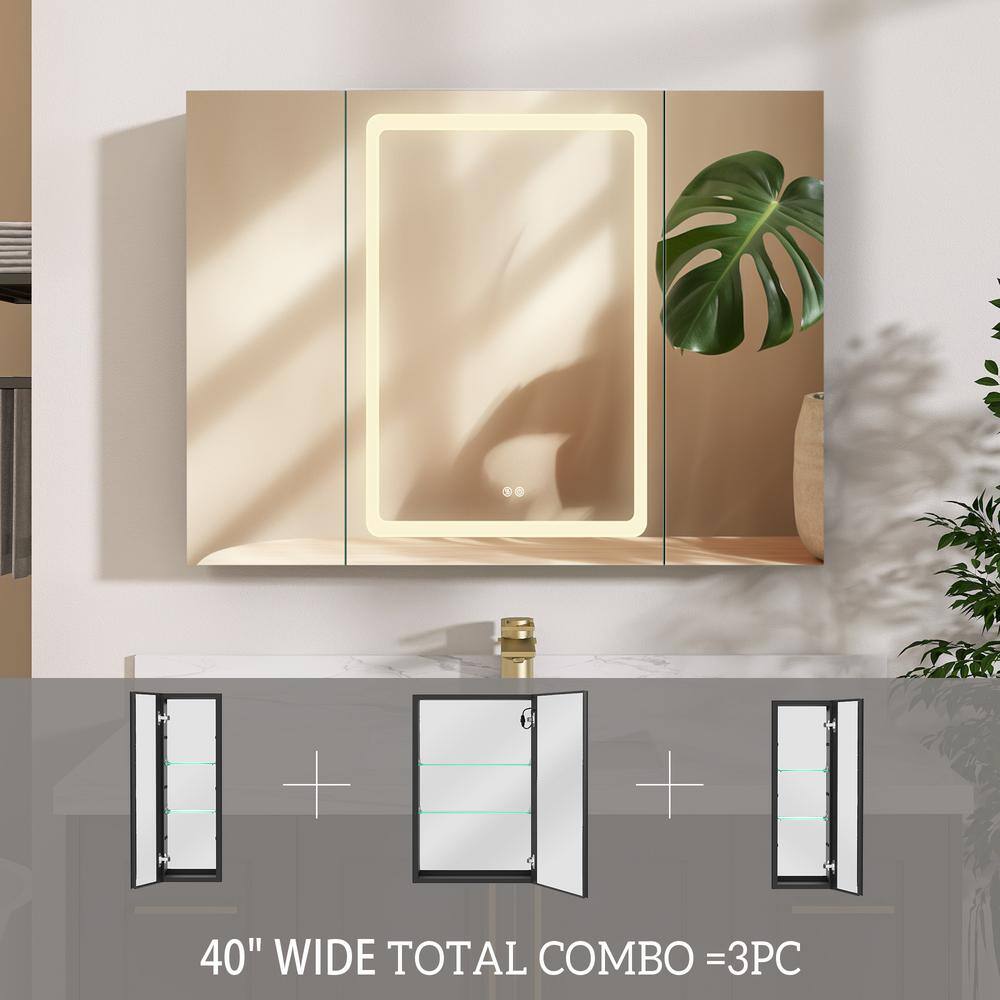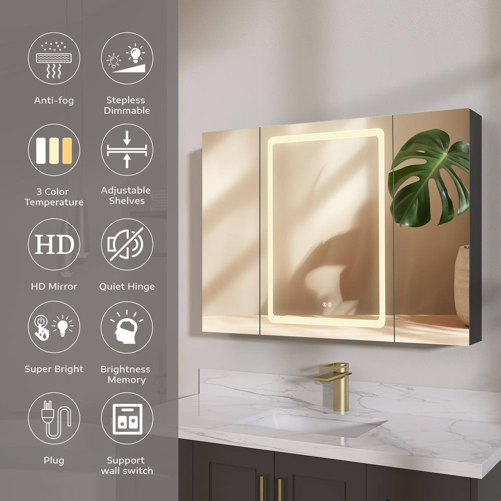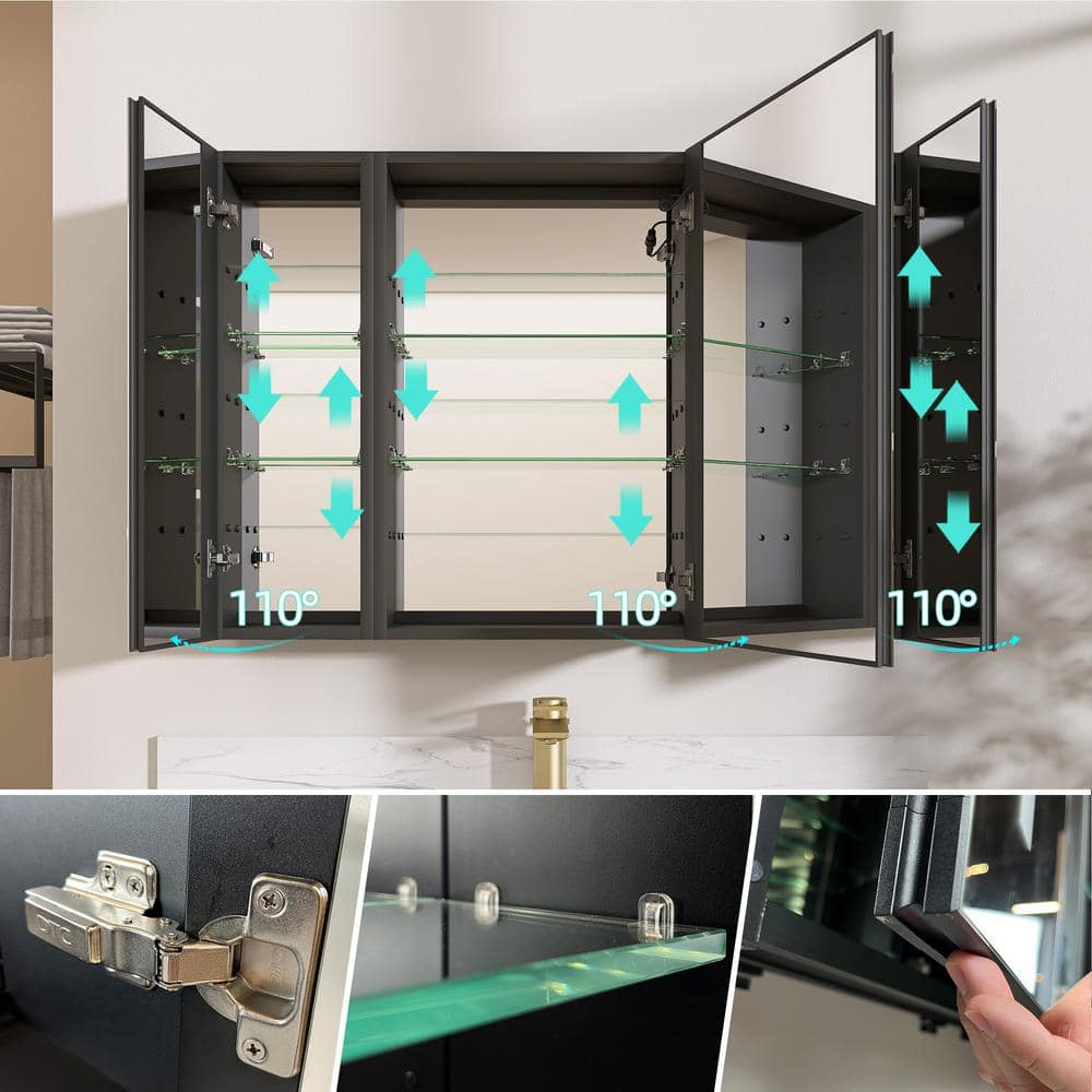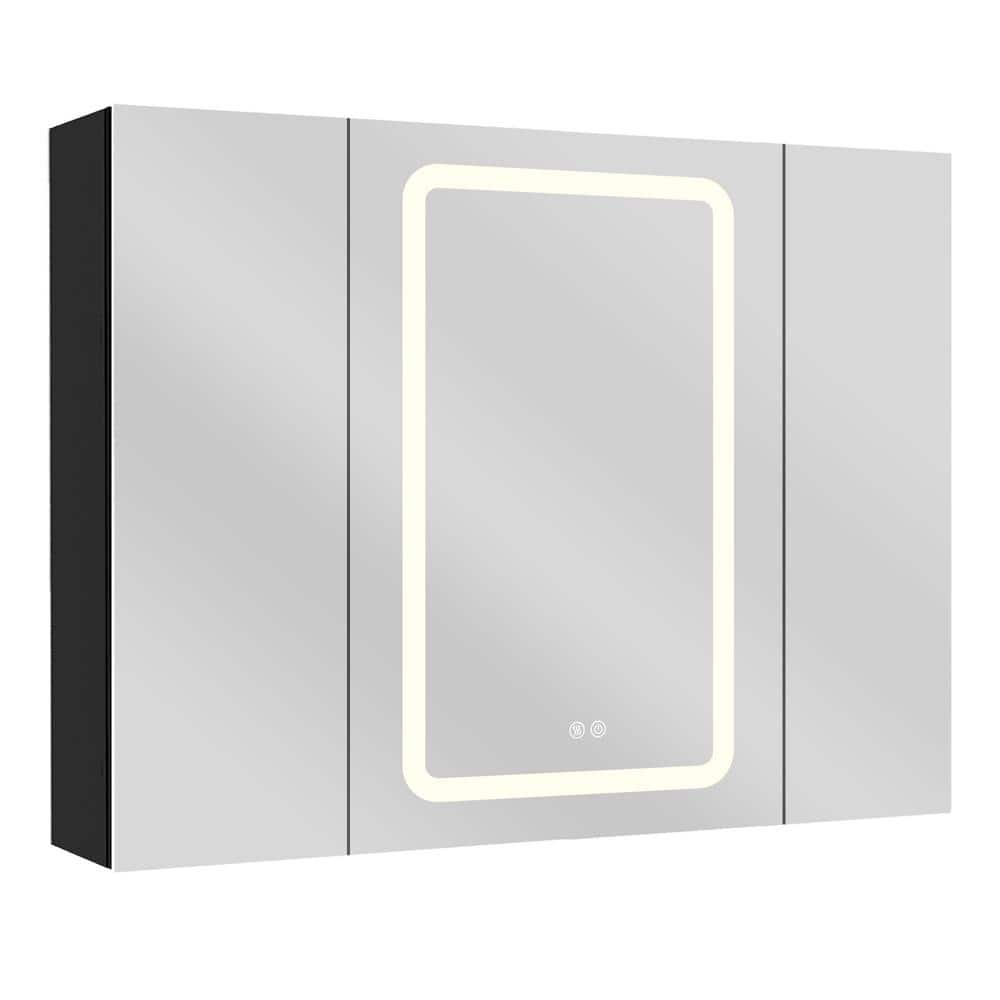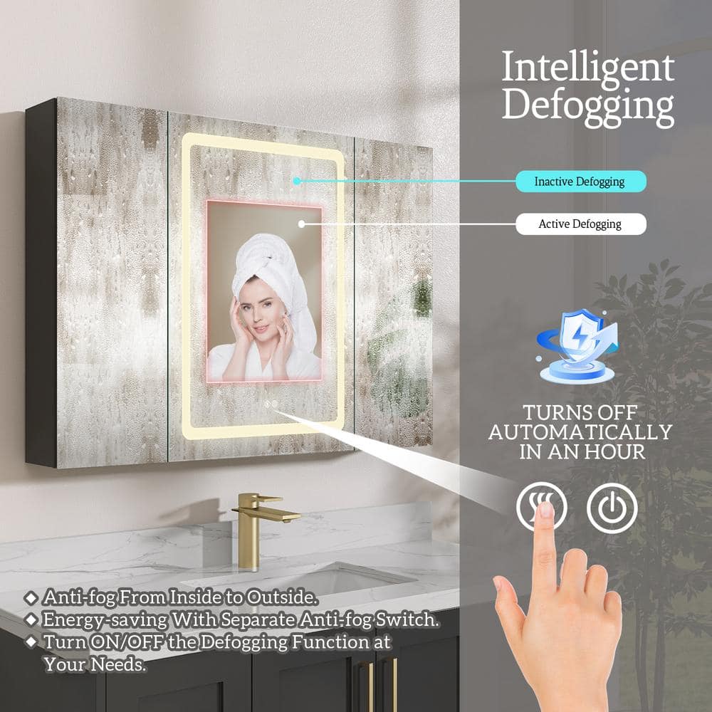 NTQ 40 in. W x 30 in. H Defogging Medium Rectangular Black Aluminum Surface Mount LED Bathroom Medicine Cabinet with Mirror