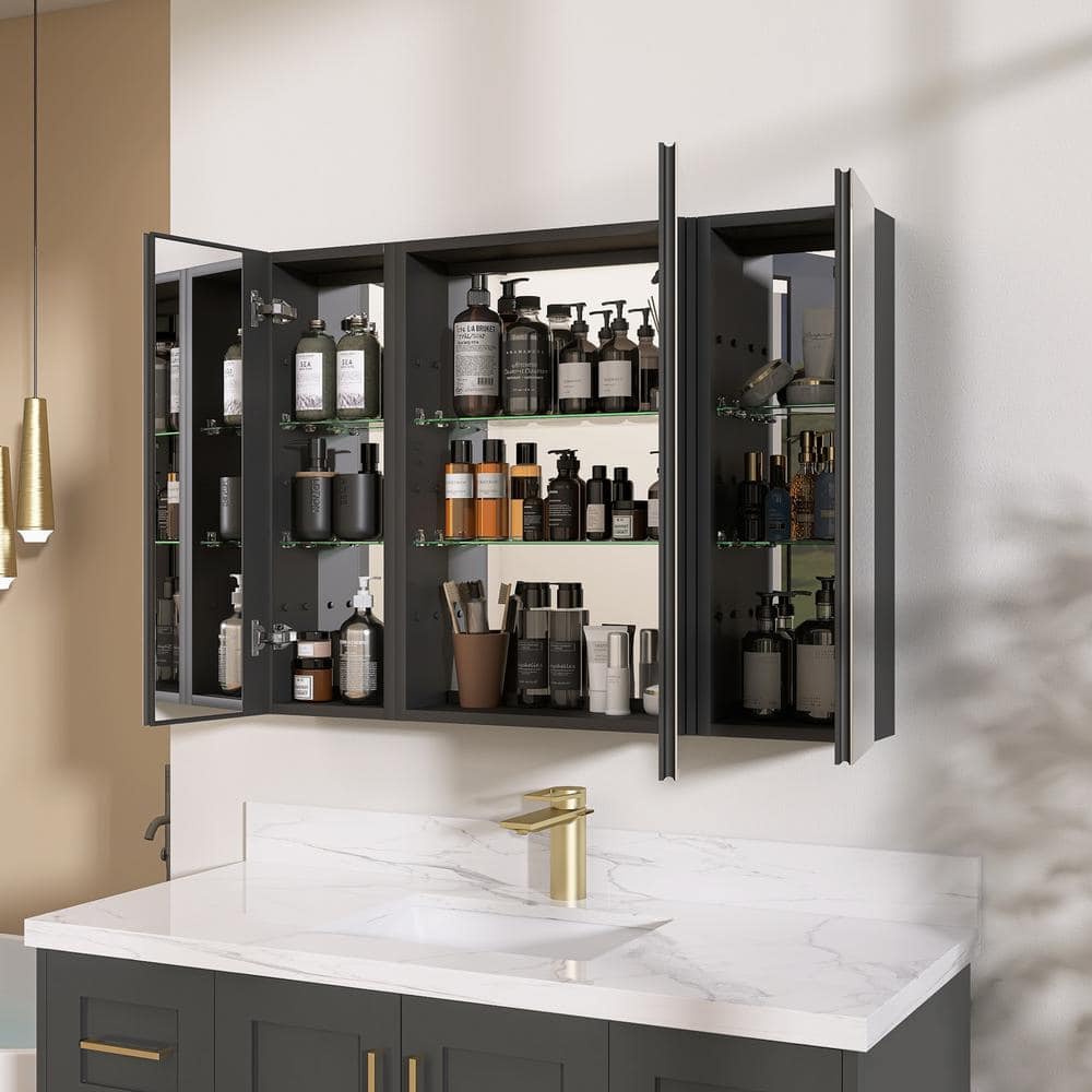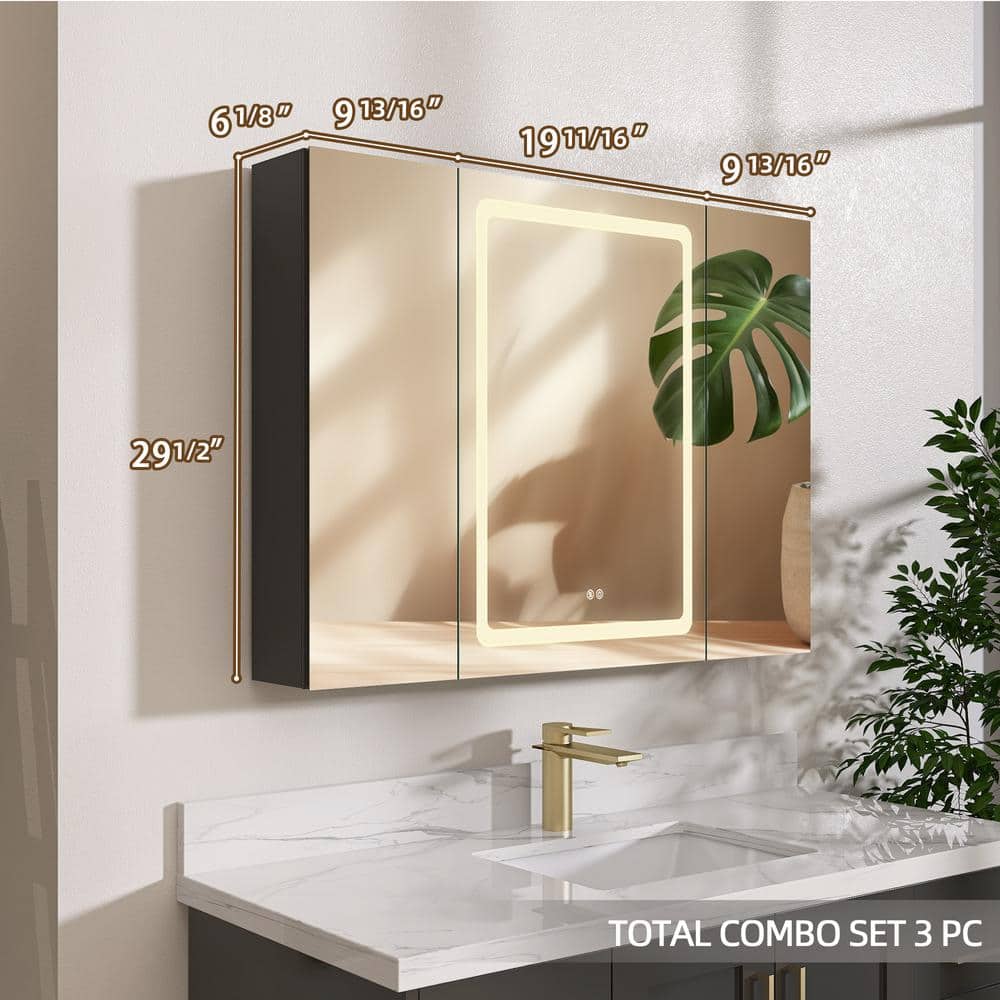 Enhance your bathroom with the NTQ Defogging LED Medicine Cabinet, featuring customizable lighting and a sleek, black aluminum finish. This modern medicine cabinet is designed for easy installation and optimal functionality, offering anti-fog technology and soft-close doors for a seamless daily experience.