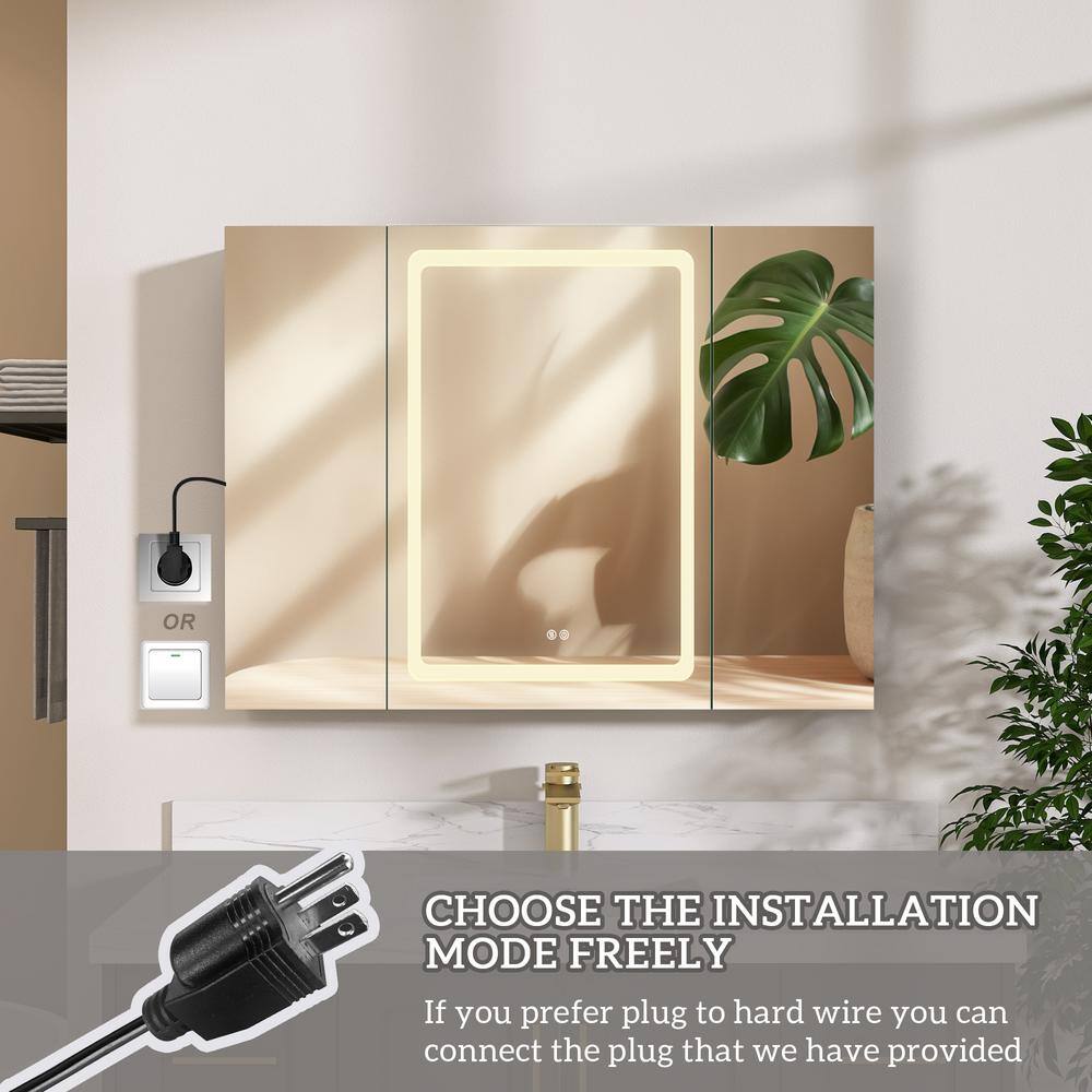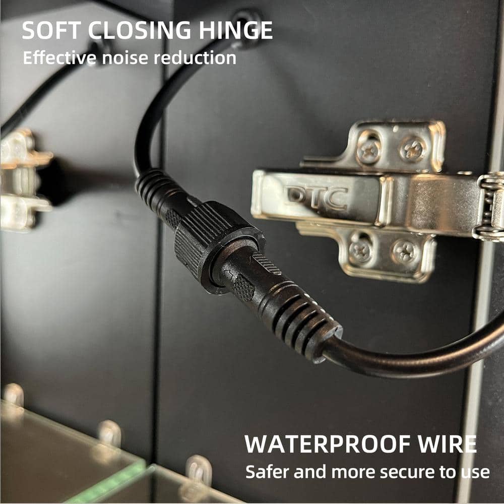 Features Adjustable Hinges,Adjustable Shelves,Beveled Edge Mirror,Easy Hang,Fog Free,Glass Panel Door(s),Lighted,Soft Close Doors