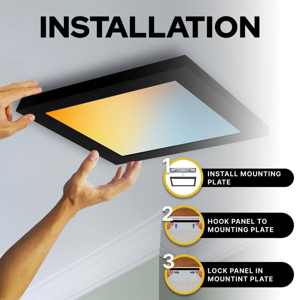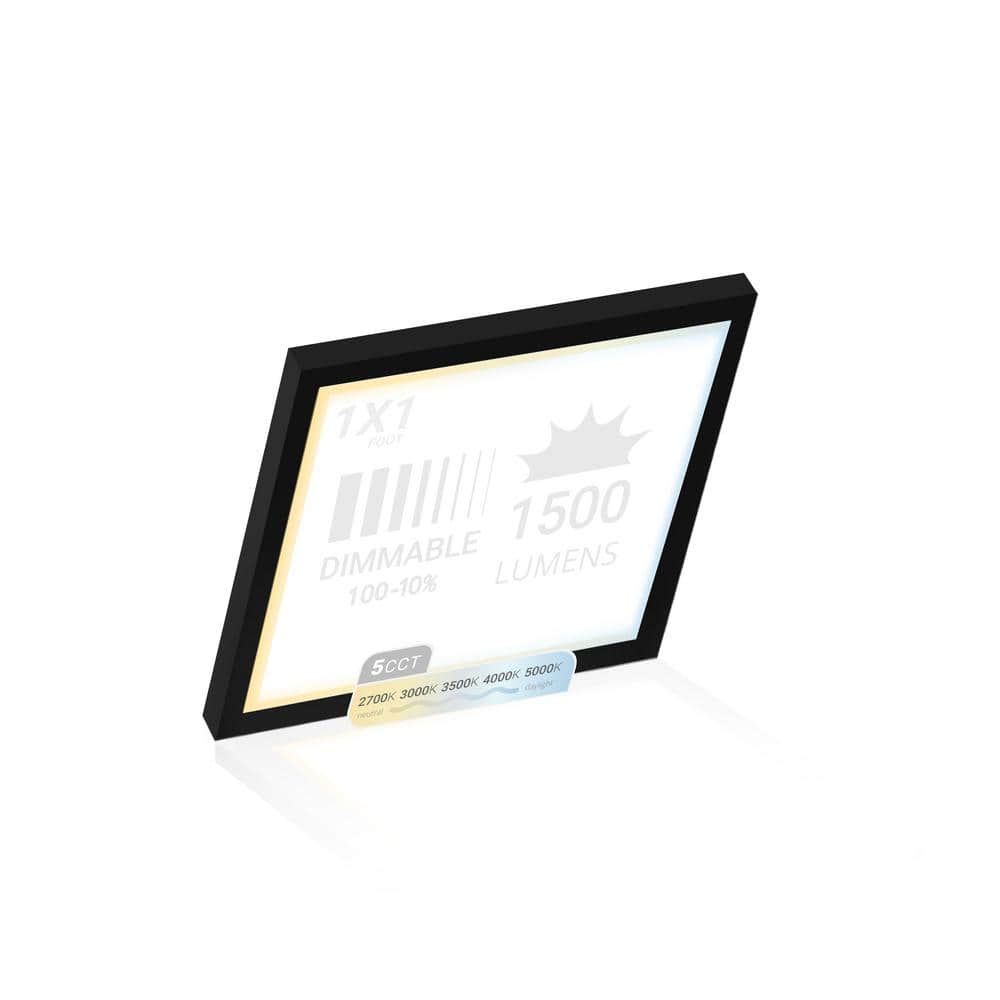 NuWatt 1 ft. x 1 ft. 120V Surface Mount 1500LM Integrated LED Panel Internal Driver, 5CCT 2700K to 5000K, Dimmable, Black Trim