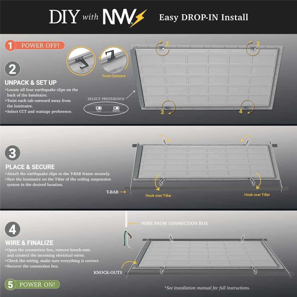 NuWatt Drop Ceiling LED Panel 4-Pack