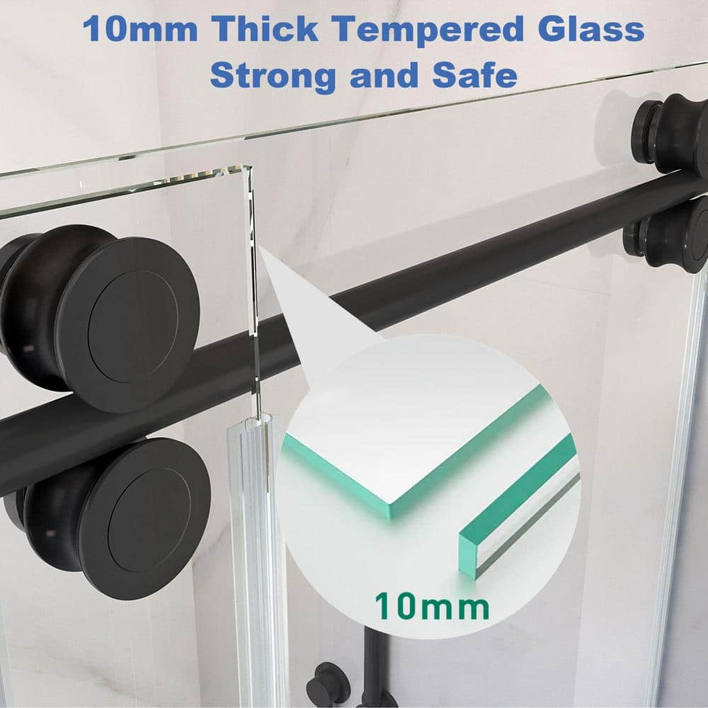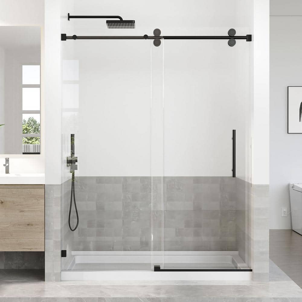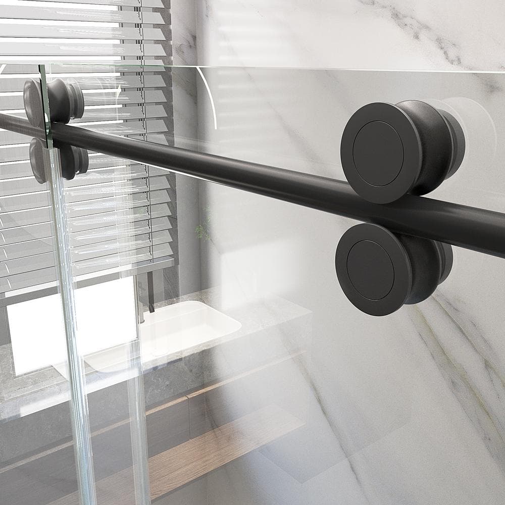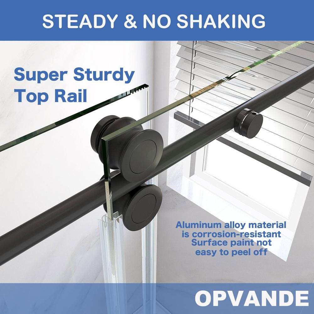 Transform your bathroom with the Opvande 60" Black Sliding Frameless Shower Door, featuring a sleek design with clear tempered glass and sturdy black hardware. This door offers both elegance and functionality, enhancing your space with clean lines and superior durability.