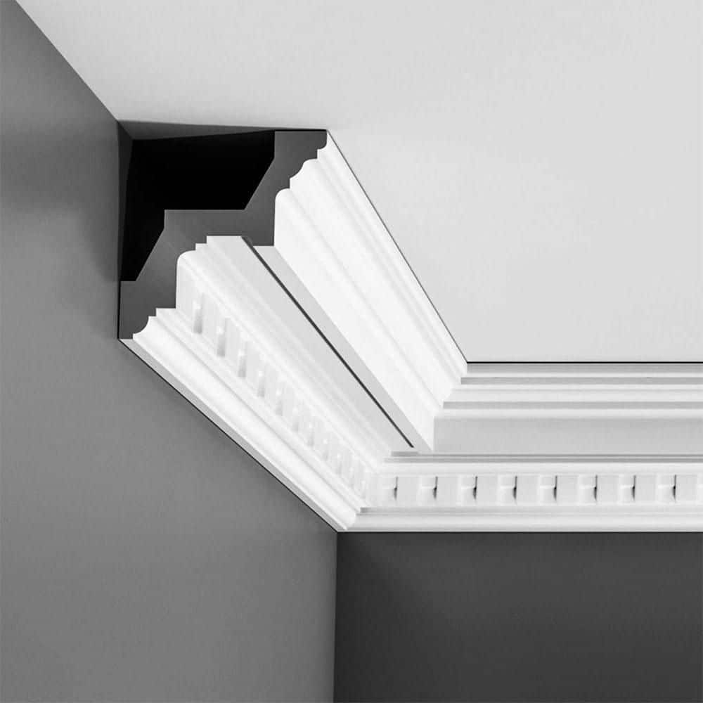 The Orac Decor Dentil Primed White Crown Moulding offers both elegance and durability with its fine European design crafted from high-density polyurethane. Perfect for home renovations, this lightweight, primed moulding installs easily and resists moisture in any room. With sharp, defined details, it adds a classic touch to any space.