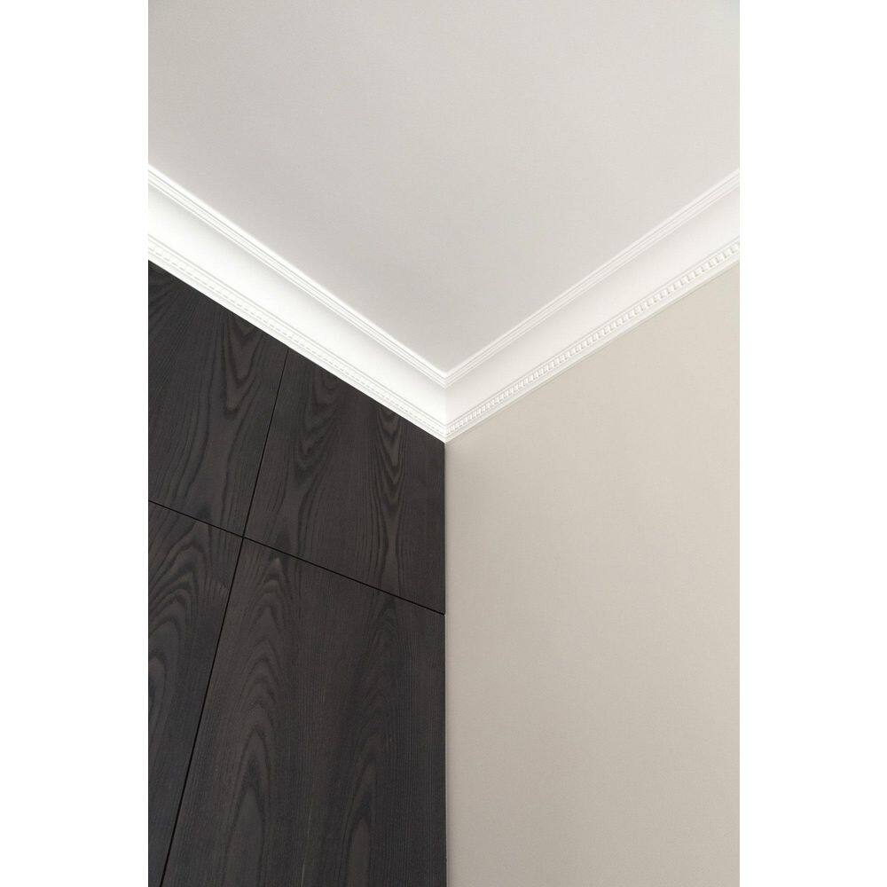The ORAC DECOR Dentil High-Impact Polystyrene Crown Moulding is a durable and elegantly detailed addition to any room, offering the look of classic European design with modern ease. Made from high-density polystyrene, it promises longevity and impact resistance, ideal for both renovations and new constructions.
