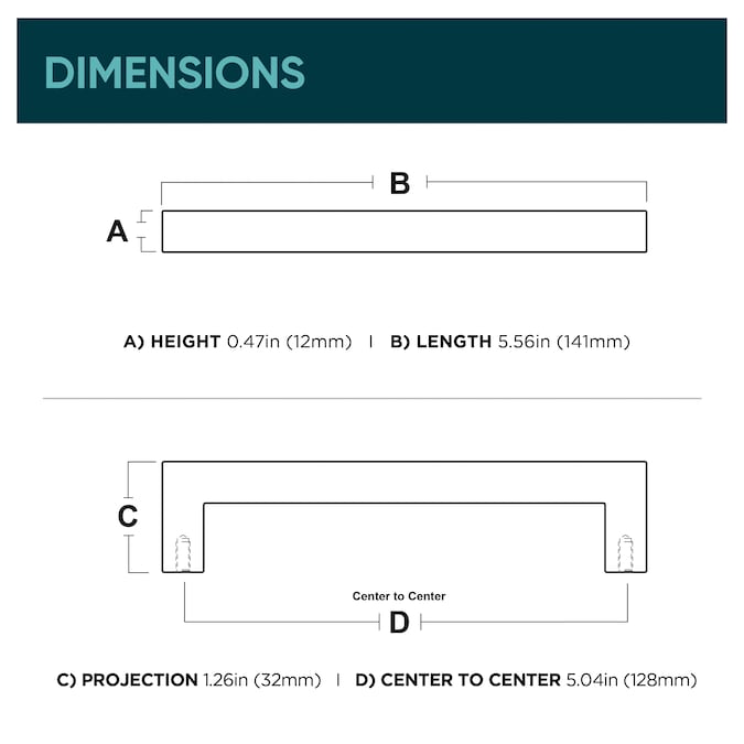 Center to Center (Millimeters) 128mm