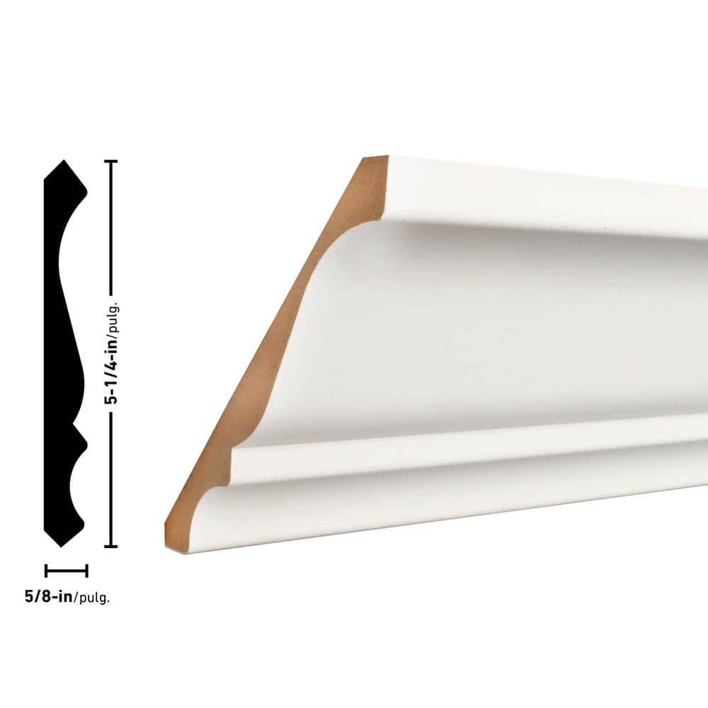 ORNAMENTAL CoverTrim 19/32 in. x 5-1/4 in. x 96 in. MDF Crown Moulding