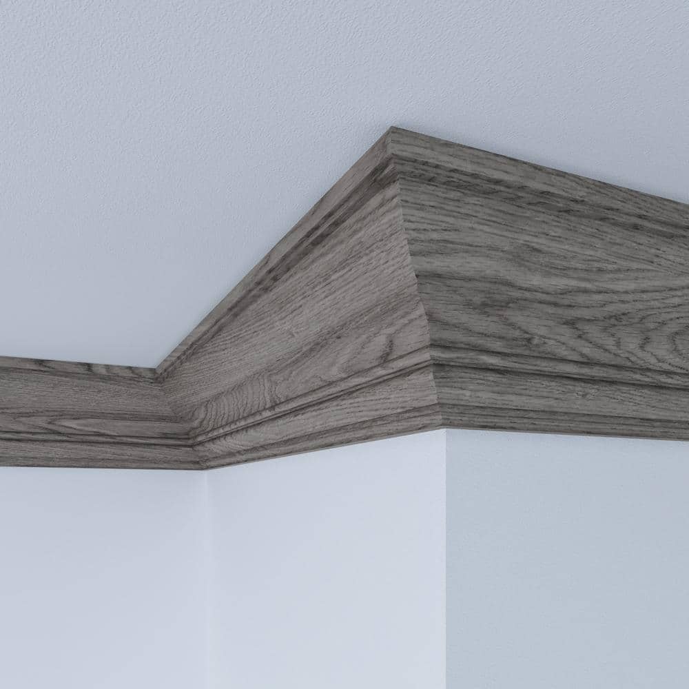 Transform your living space with Ornamental Mouldings' Prestained Gray Crown Moulding and bring unparalleled elegance into your home today.