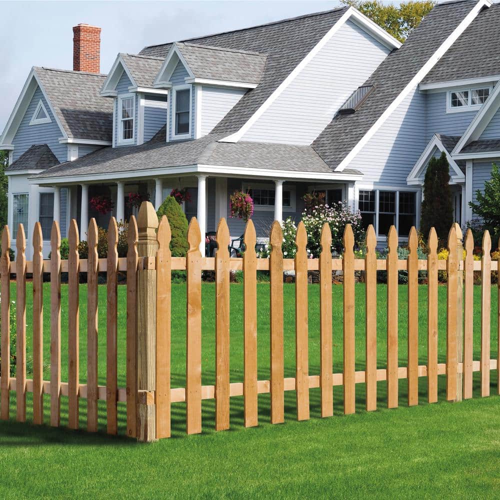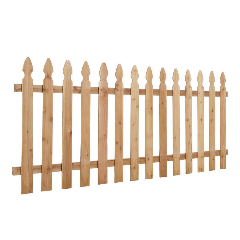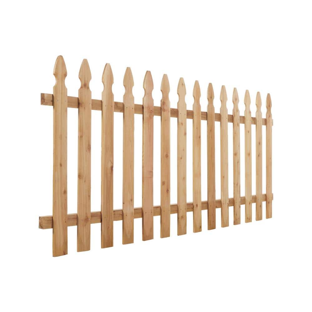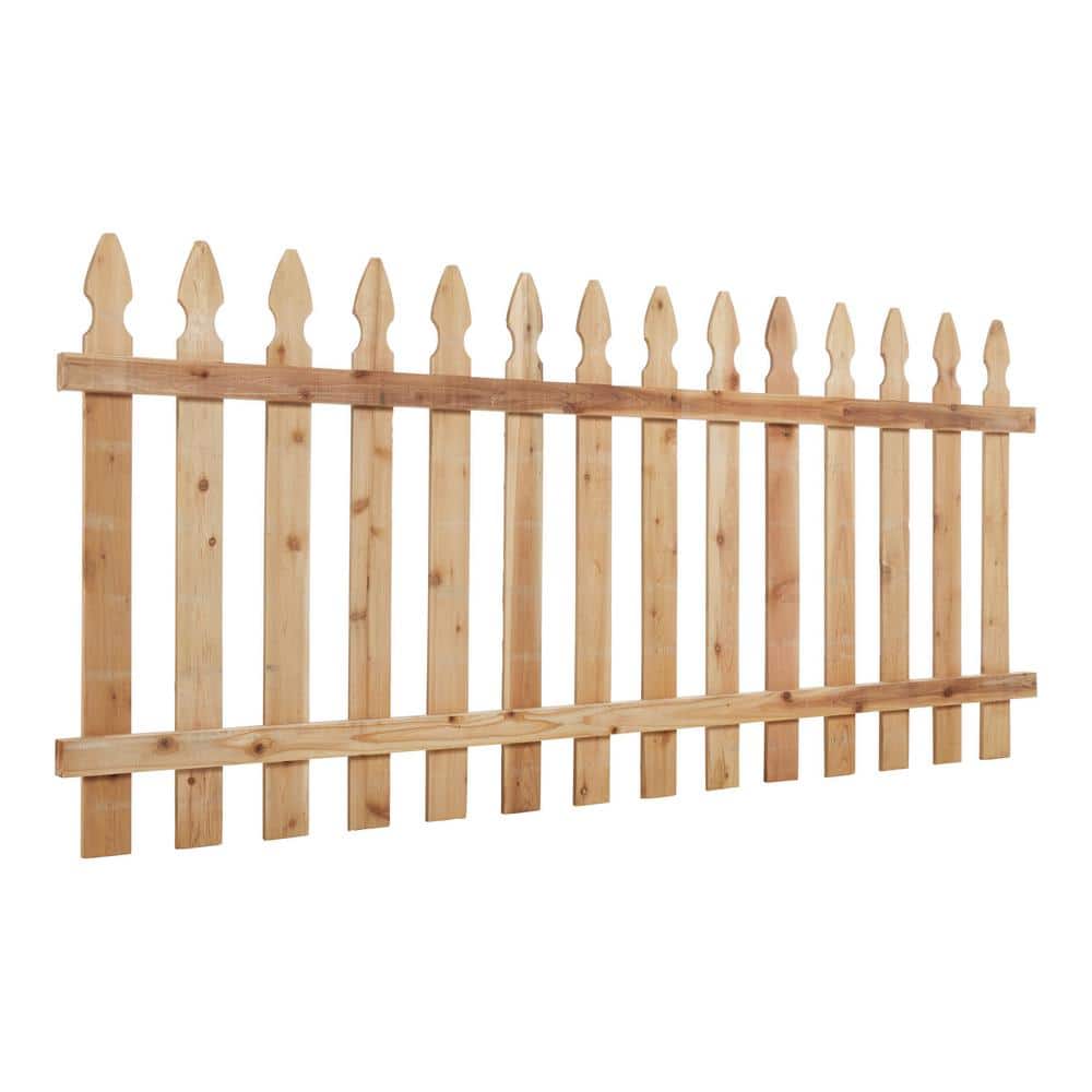 Crafted from naturally rot-resistant cedar, the Outdoor Essentials 3-1/2 ft. x 8 ft. French Gothic Fence Panel combines durability with elegance. Its spaced picket design promotes airflow while offering a unique decorative element to any yard or garden.