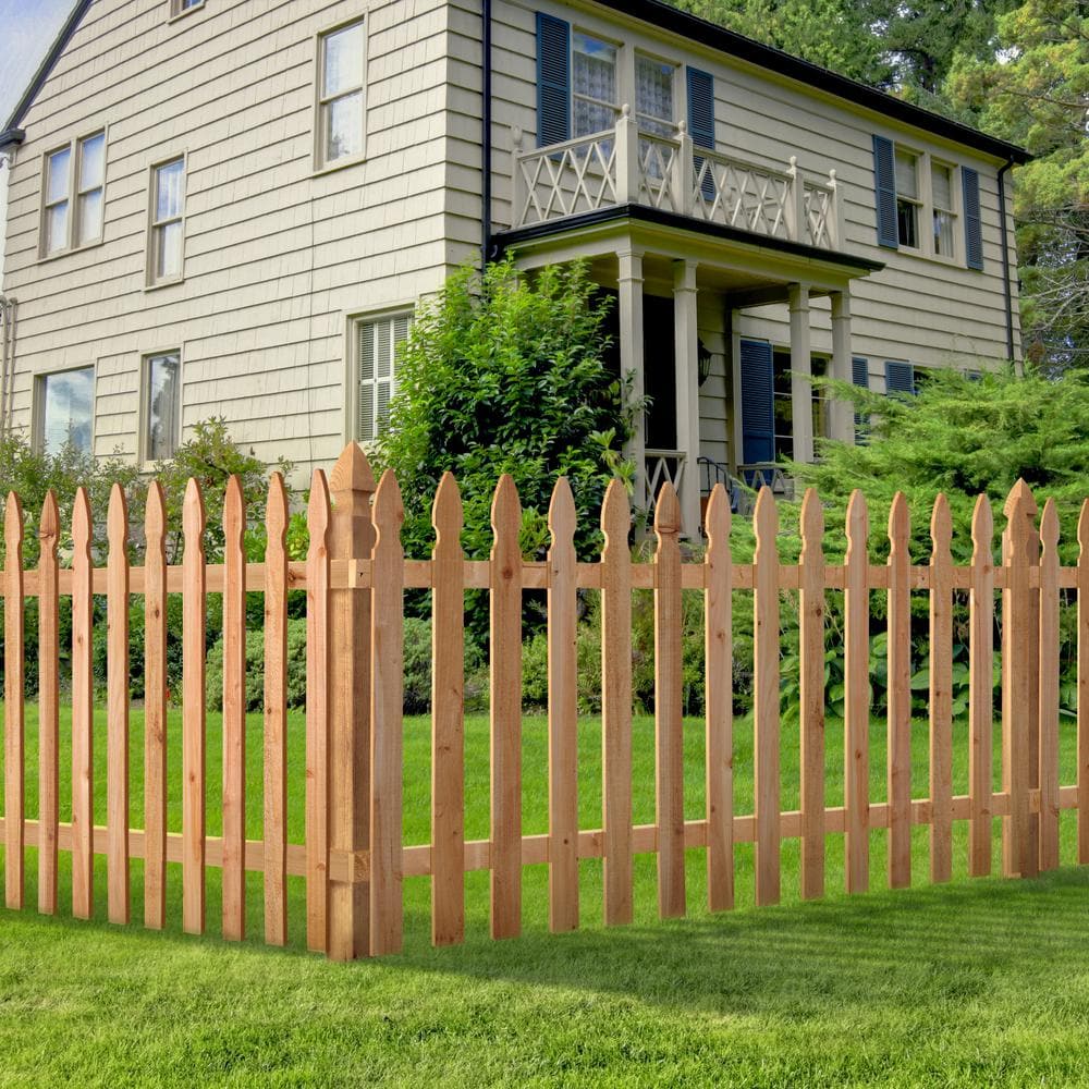 Transform your yard into an elegant sanctuary with the Outdoor Essentials Cedar French Gothic Fence Panel.