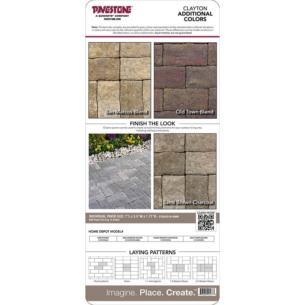 A: This sample is specific to the Clayton Greystone design, offering a preview of its unique style, but not intended for mixed use between different paver styles.