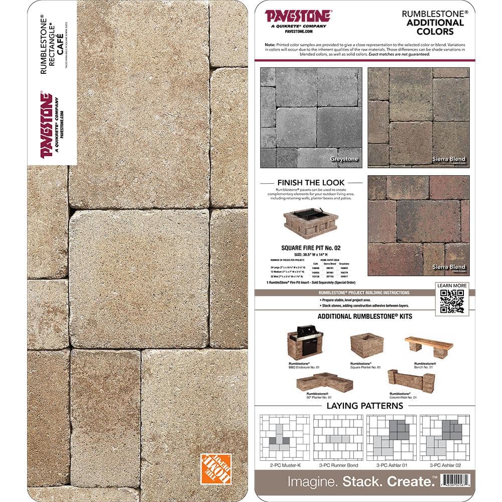 The RumbleStone Cafe Rectangle Concrete Paver Sample by Pavestone allows you to envision your next landscaping project with ease and precision. Perfect for pathways or patios, these durable concrete blocks combine practical engineering with rustic charm, making them ideal for both small and expansive endeavors.