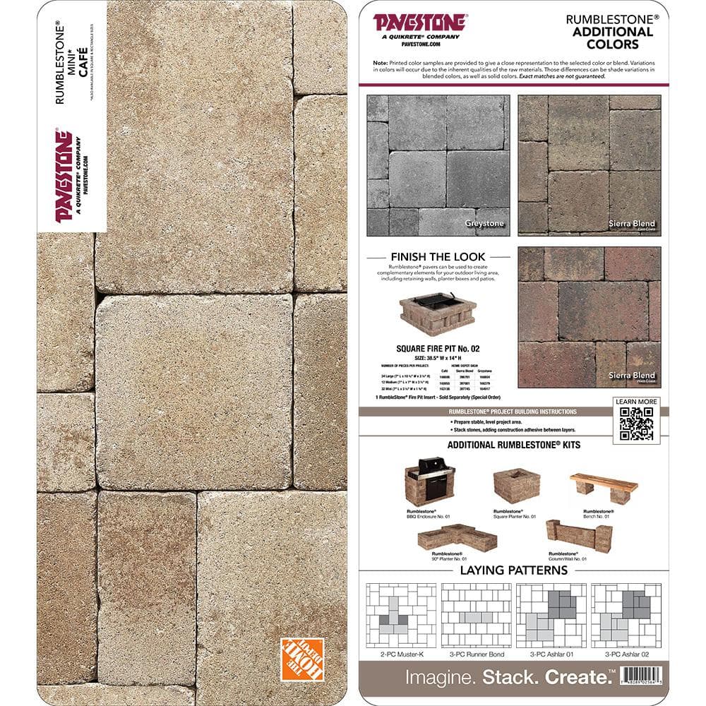 Explore the rustic elegance of Pavestone's RumbleStone Mini Cafe Concrete Paver with this convenient paper sample. Perfect for visualizing your design, this sample offers a tangible preview of color and texture before purchasing the full-size pavers for your outdoor projects.