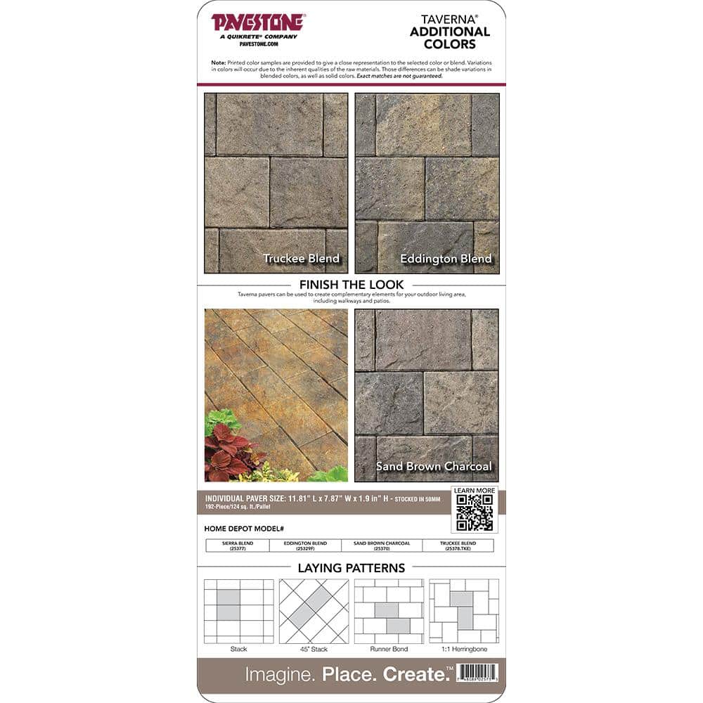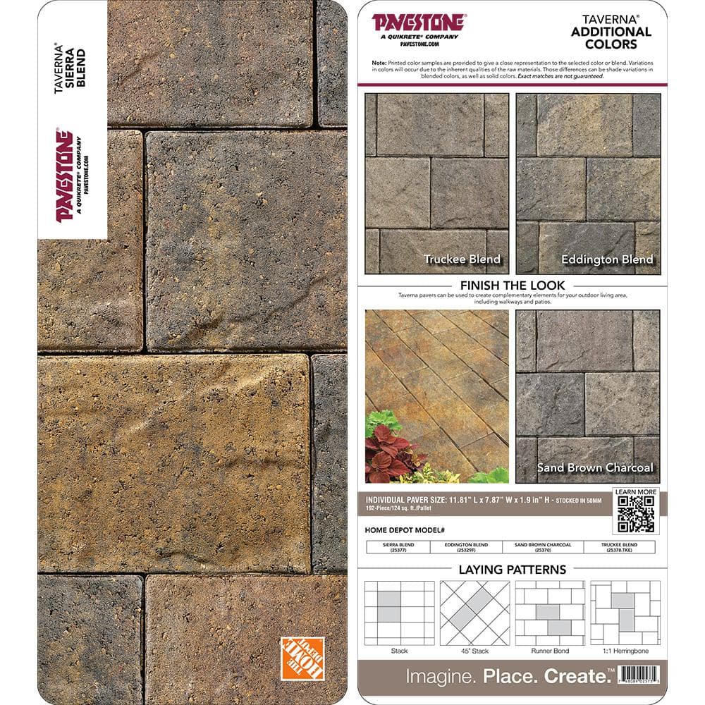 Experience the rustic elegance of Old World pavements with the Taverna Sierra Blend Concrete Paver Sample. This sample board gives you a preview of the riven stone surfaces and barefoot-friendly edges that characterize the Taverna series, perfect for creating historical-style patios and sidewalks. View color options and installation patterns conveniently displayed on the reverse side.