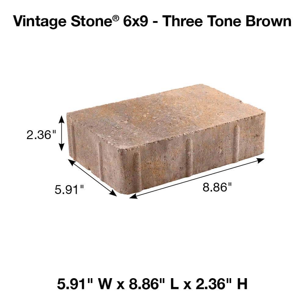 Pavestone Vintage 8.86 in. L. x 5.91 in. W x 2.36 in. H Three Tone Brown Concrete Paver (250 pcs/90 sq ft/Pallet)