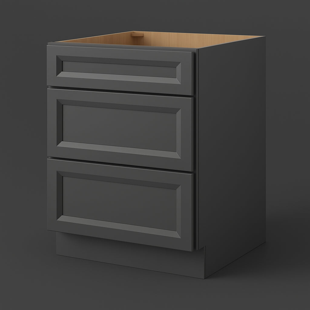 The Keyport Shaker Drawer Base Kitchen Cabinet is a masterpiece of modern design and functionality. Its charcoal painted finish and shaker style bring a sophisticated touch to any kitchen space. Pair it with sleek hardware for a contemporary look or classic knobs for a traditional feel. This cabinet is not just a storage solution; it's a statement piece that transforms your kitchen into a haven of style and practicality.