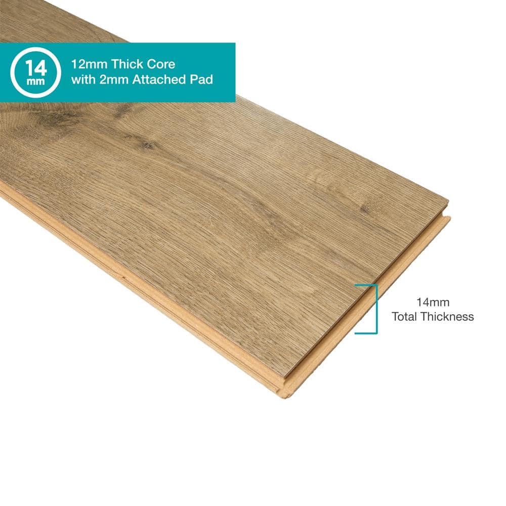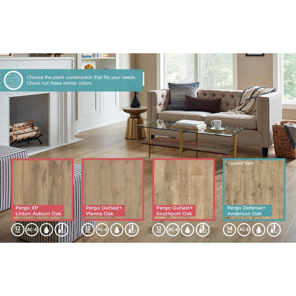Pergo Defense+ Anderson Oak 14 mm T x 7.4 in. W Waterproof Laminate Wood Flooring (17.18 sqft/case)