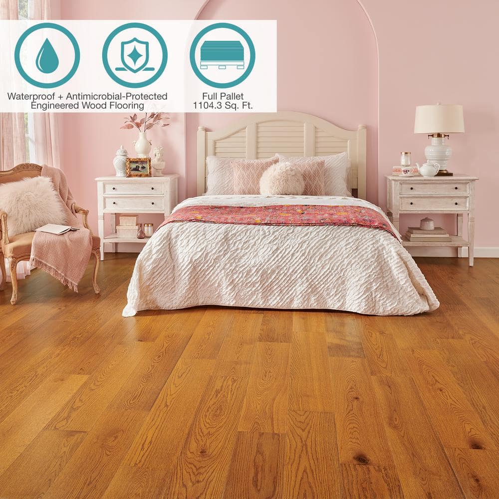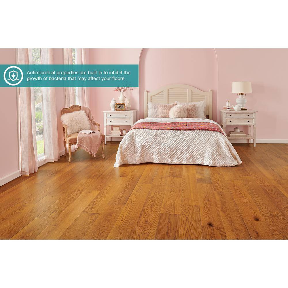 With its warm, rich tones and wirebrushed texture, the Pergo Defense+ Hales Oak Hardwood Flooring transforms any room into a sanctuary of timeless elegance. Its robust construction and antimicrobial surface serve both beauty and practicality, making it perfect for high-traffic areas. Style it with vintage decor to highlight its rustic charm or modern accents to contrast its timeless design. In any setting, this flooring stands as a testament to luxury that doesn't compromise on functionality.