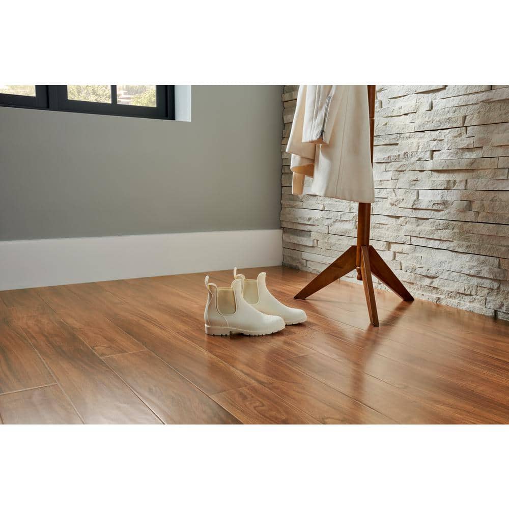 Authentic Wood Look: Features exotic Roselawn Teak finish with soft-scraped texture.